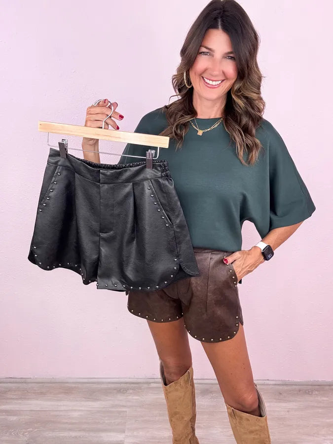 Your favorite fall trend has arrived! These faux leather shorts are the styling tool you will be so glad you have this fall!