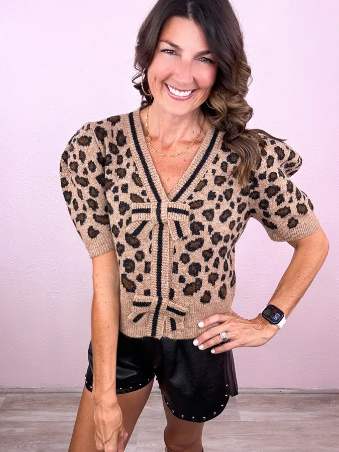Do we even have to explain how bad you need this one?! We are obsessed with this leopard print, the bow front details are to die for and its so cute as a top or a cardigan!