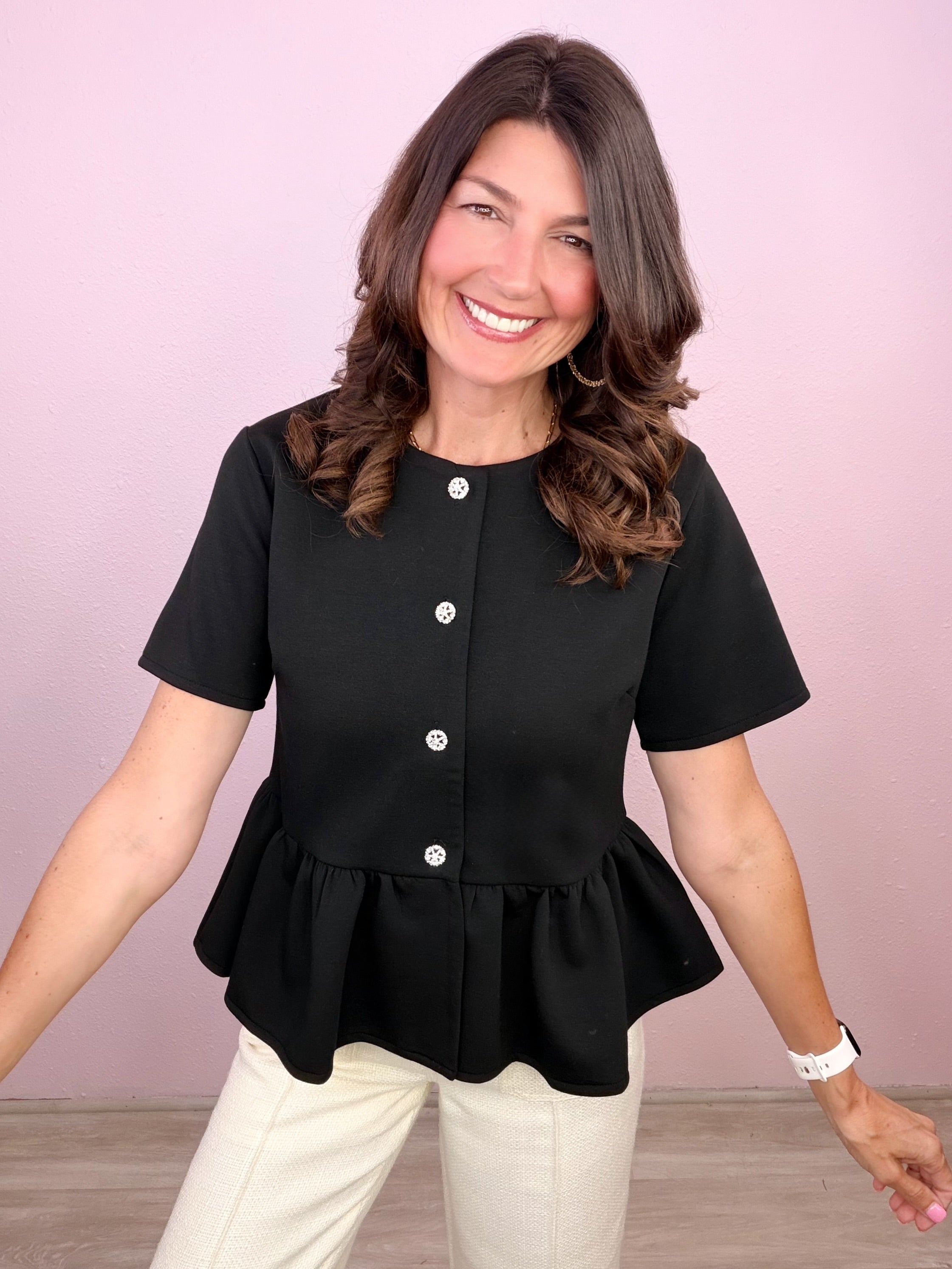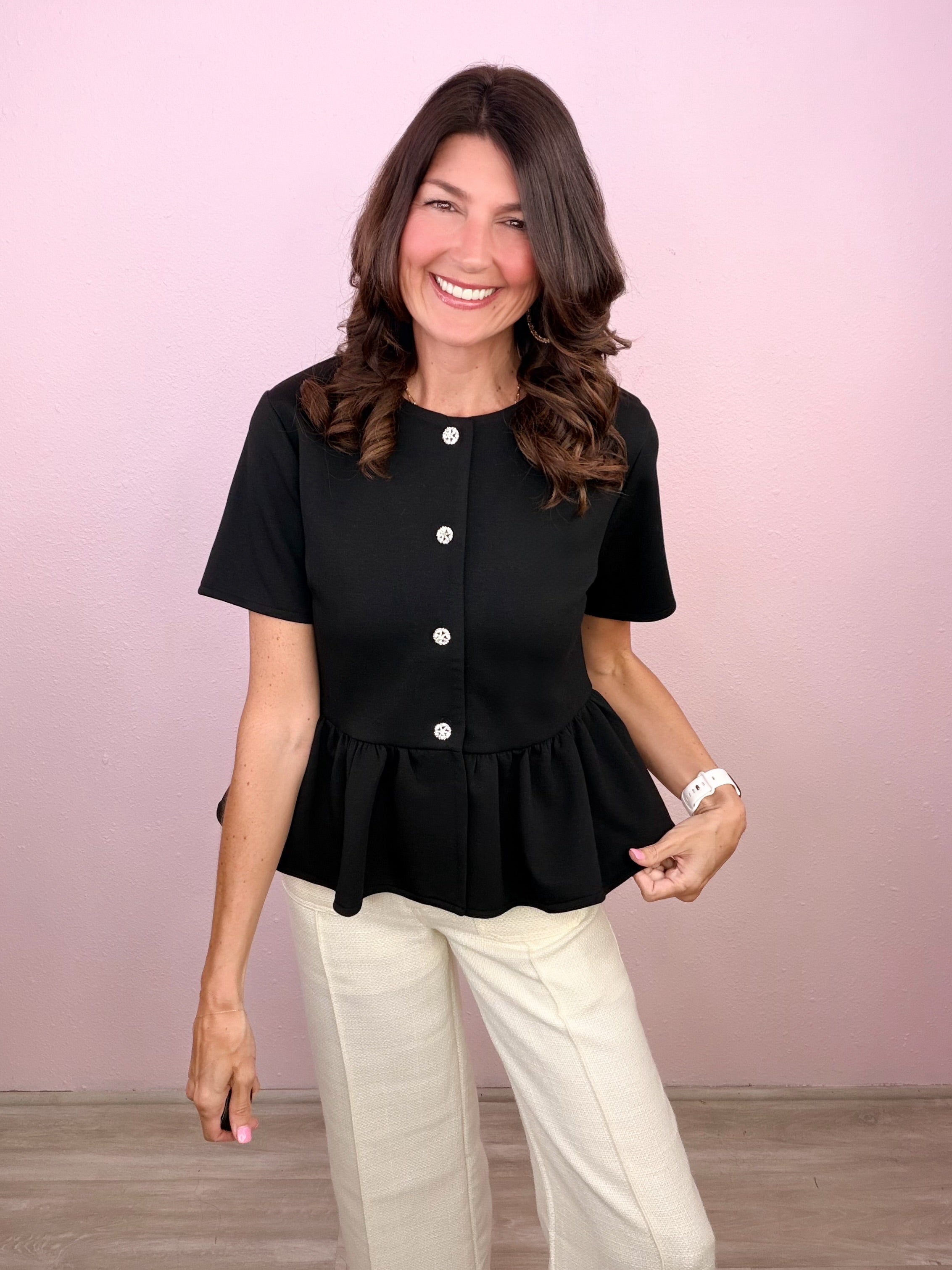 Where classic meets effortlessly chic—this is your wear-it-anywhere top! Feminine structure with a modern, elevated twist!