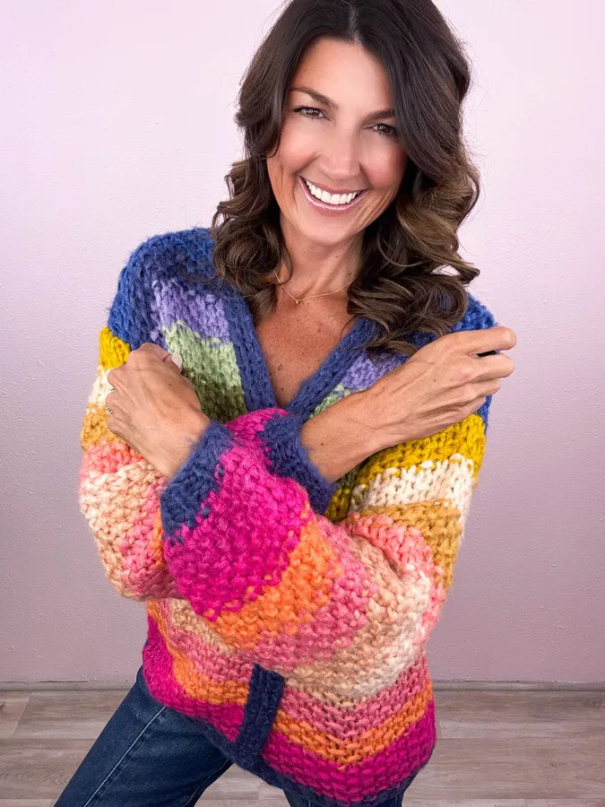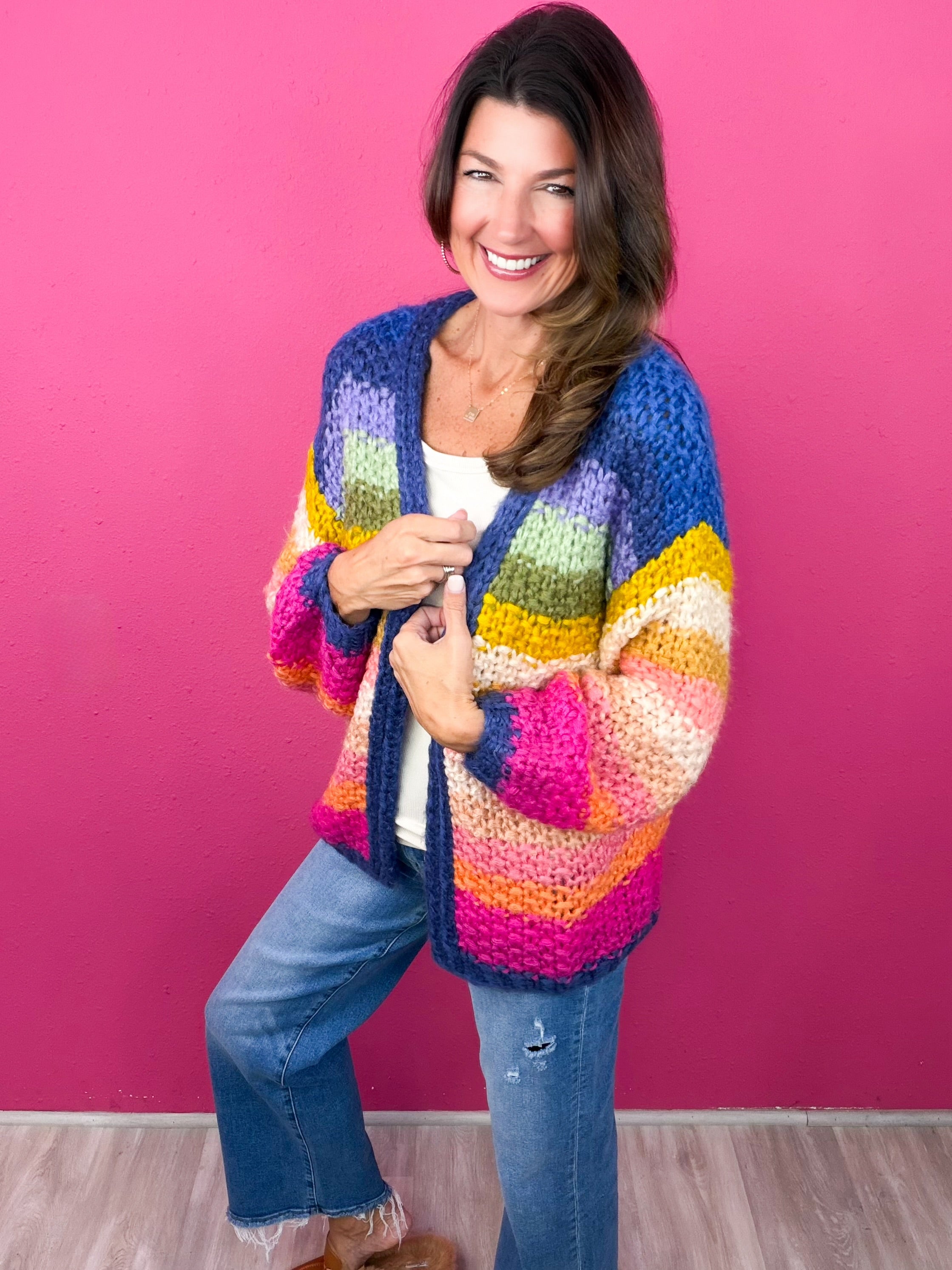 This hand knit cardigan is the PERFECT layer! This sweet cardigan makes spicing up a look effortless and SO cozy!