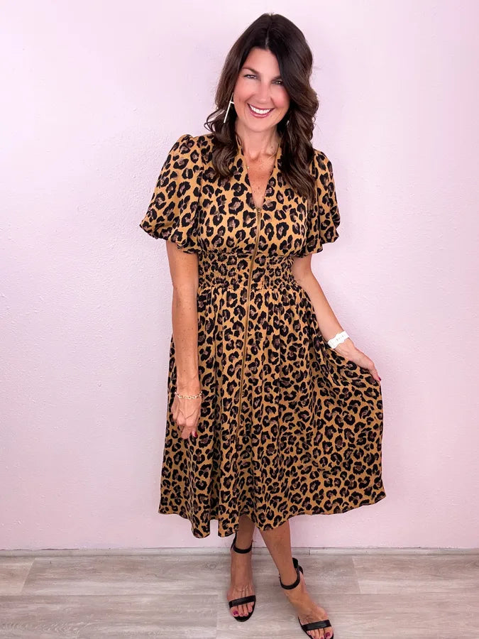 Obsessed is an understatement! Our favorite style dress is back in the most fierce leopard print!