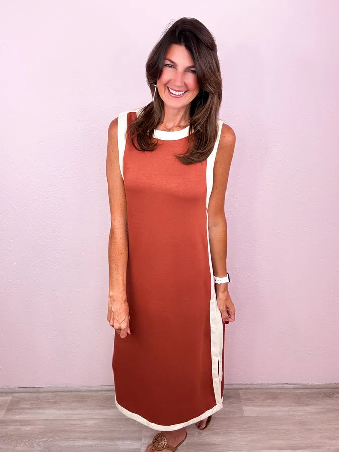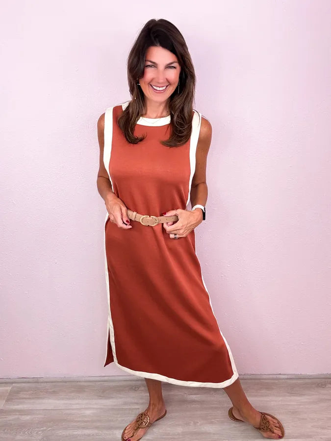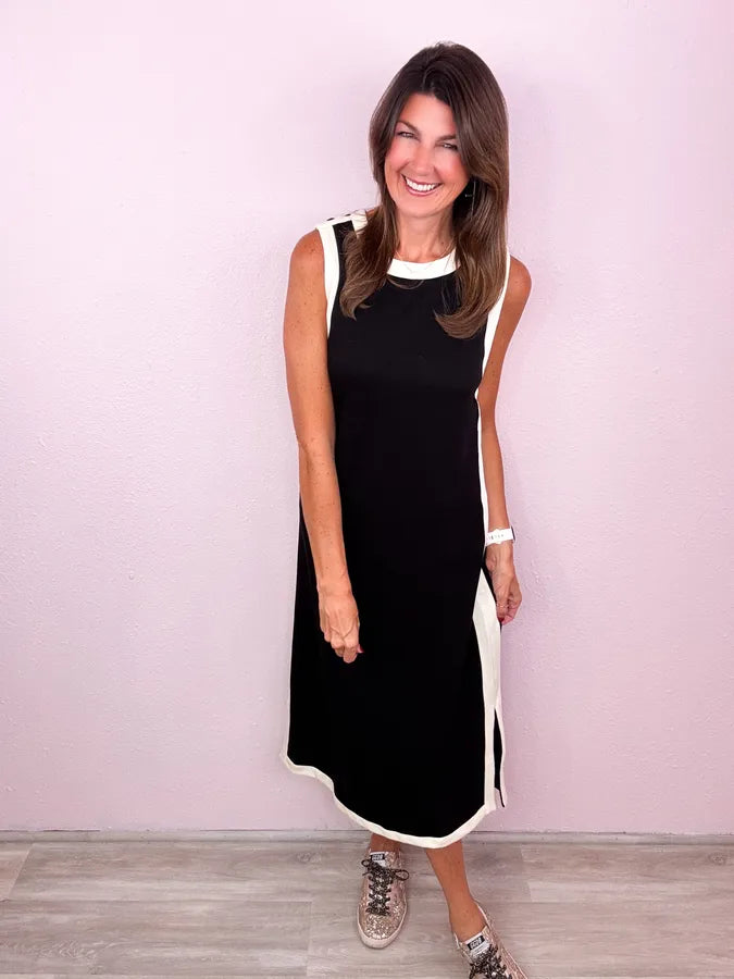 Best seller returns in a midi! Whether you're styling it for a chic gameday look or a casual fall look - this is the dress you want in your closet!