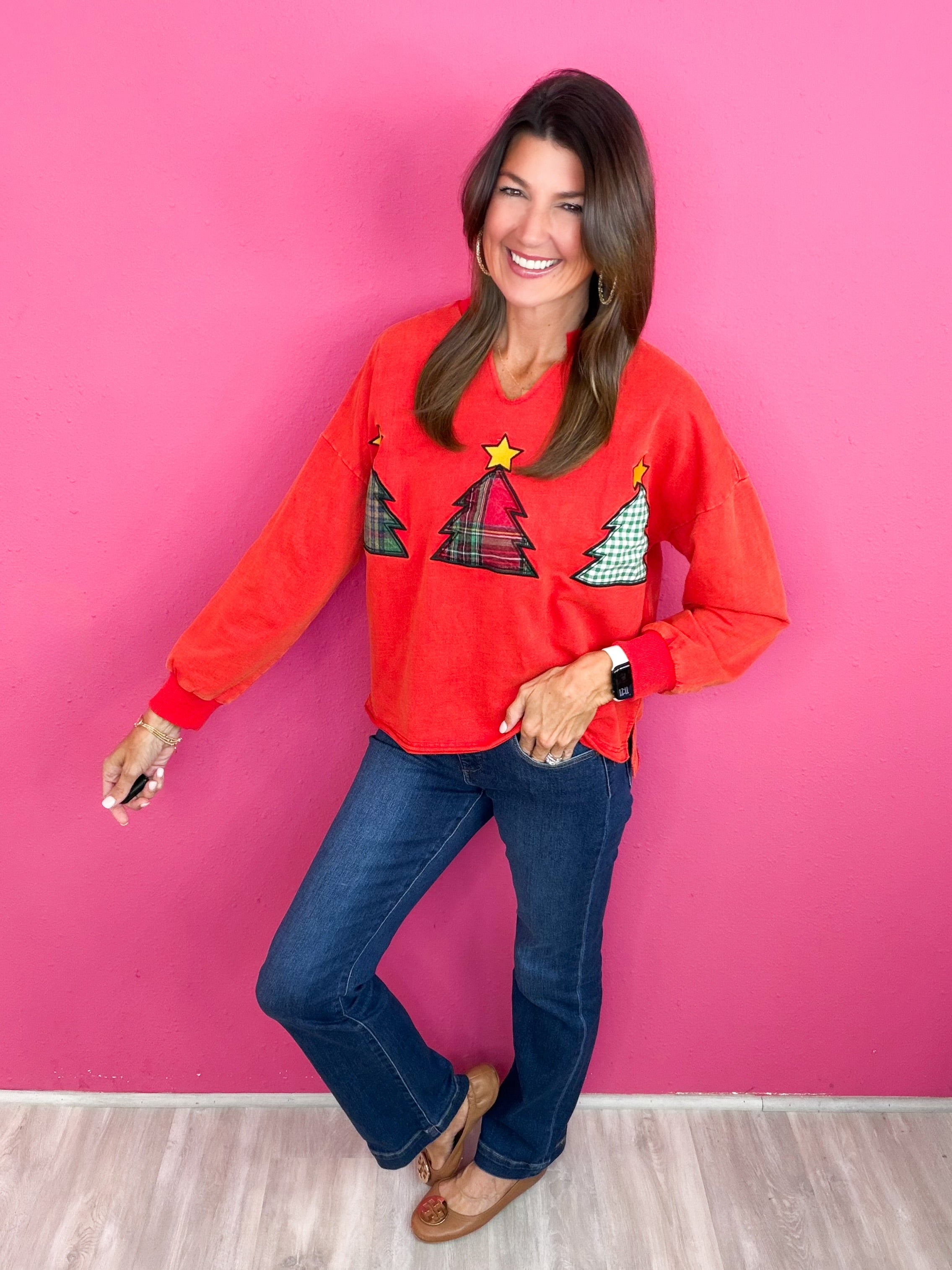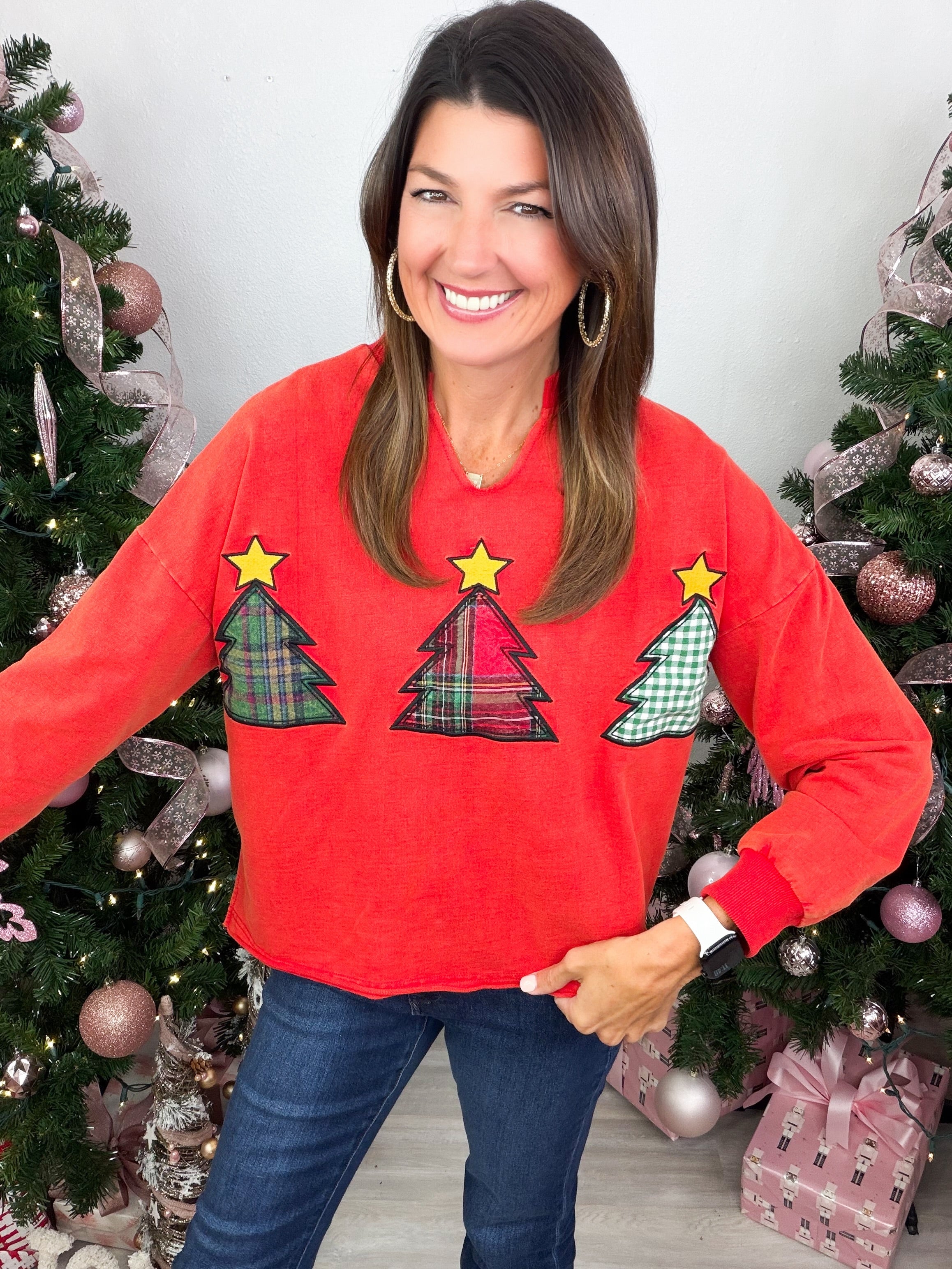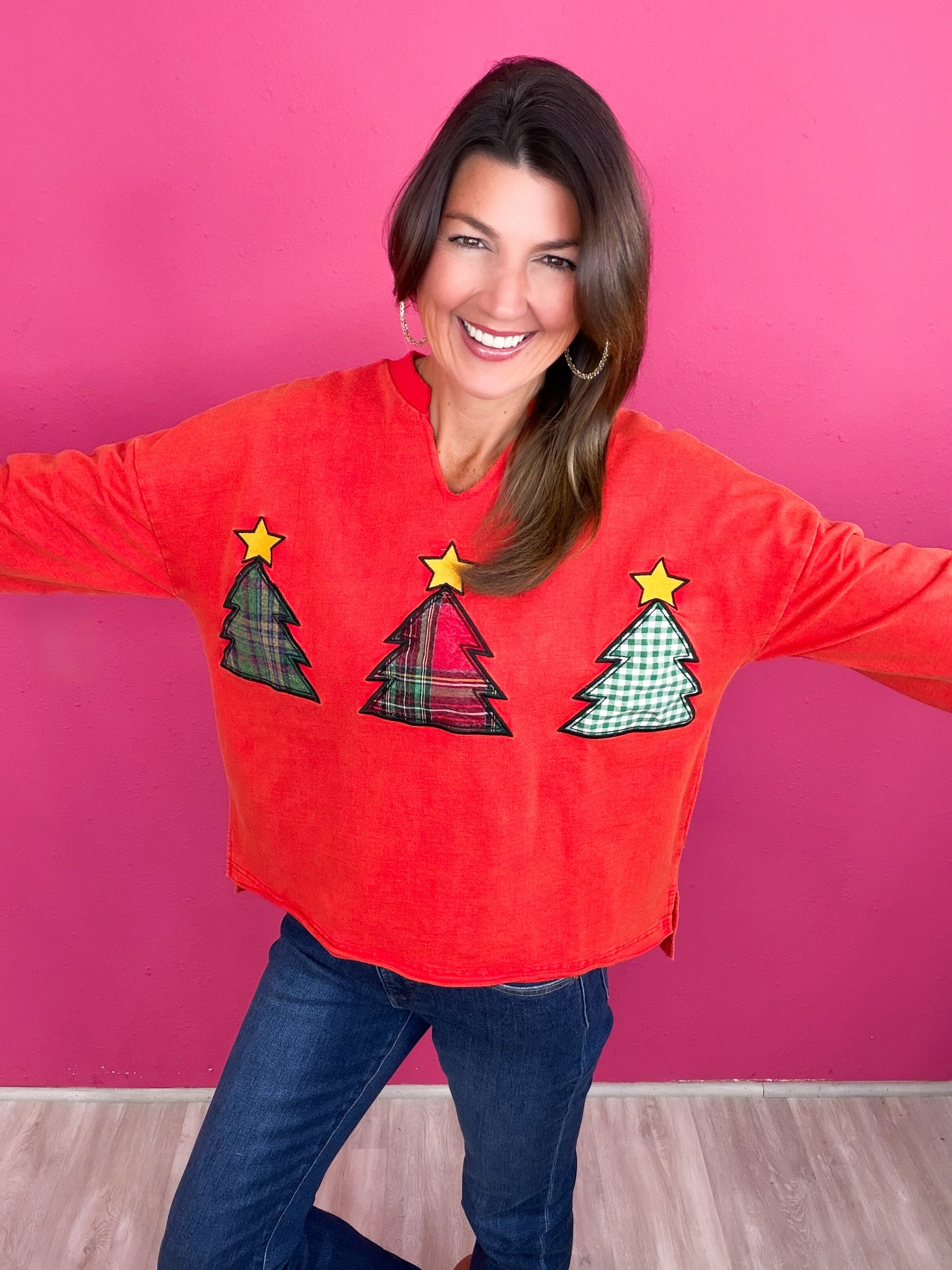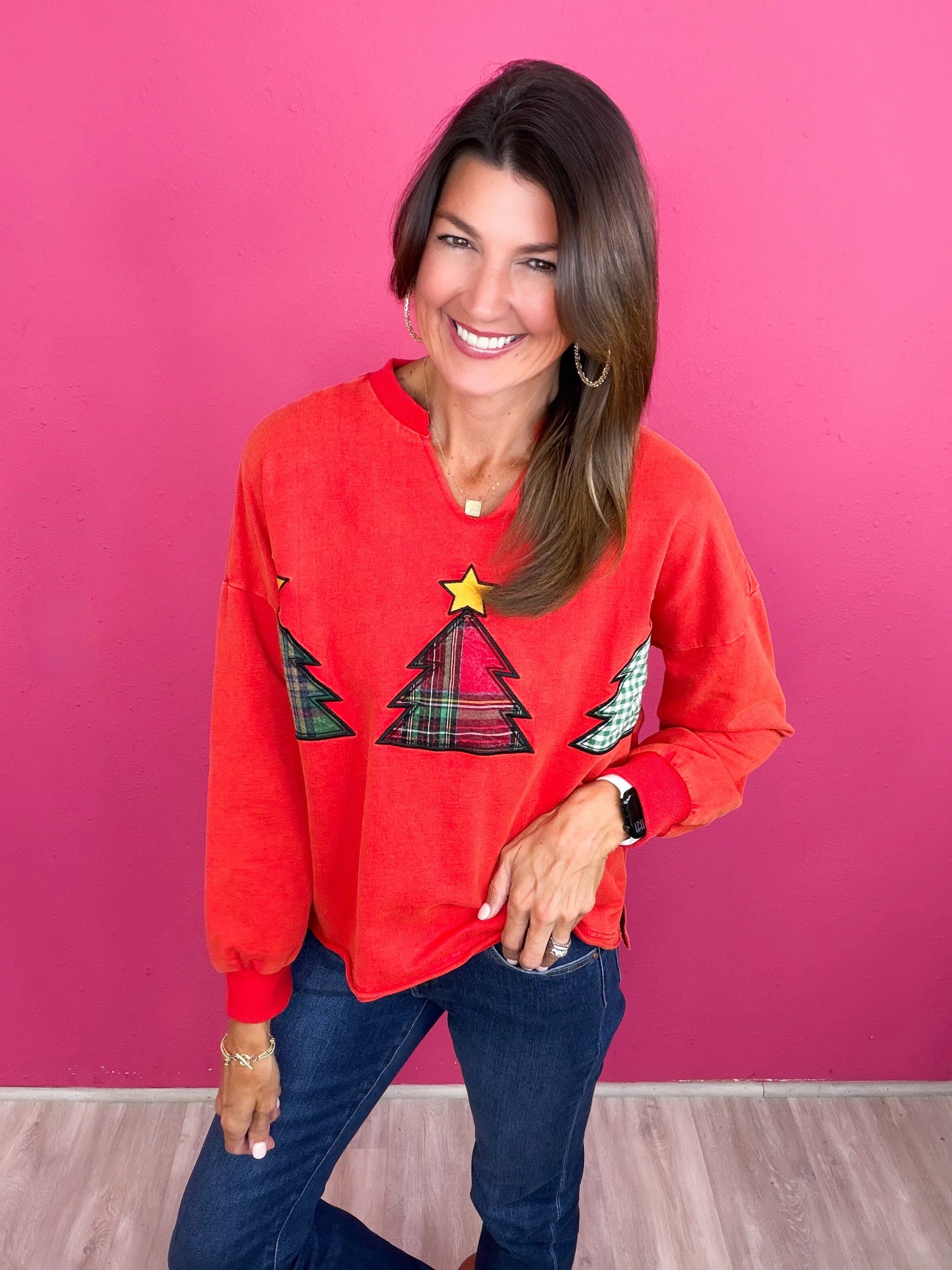 All about Christmas and this adorable Christmas tree pullover is the perfect festive look!