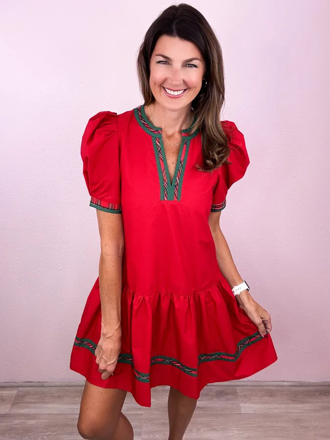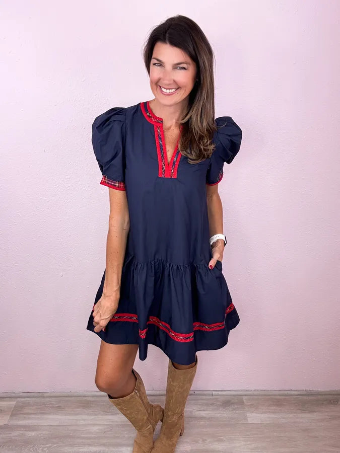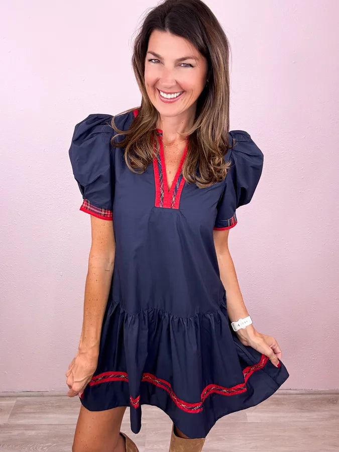 Say hello to perfection! Our favorite solid style is back with the perfect plaid trim and so ready for the season!