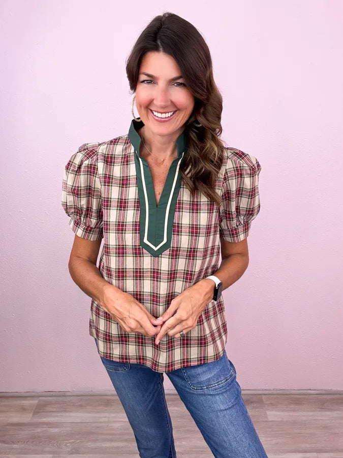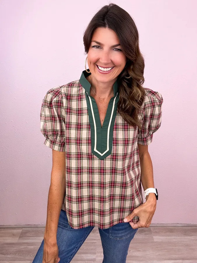 You know we can never resist a cute plaid! And the bold caftan band makes this the top notch choice!