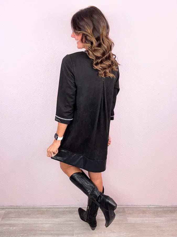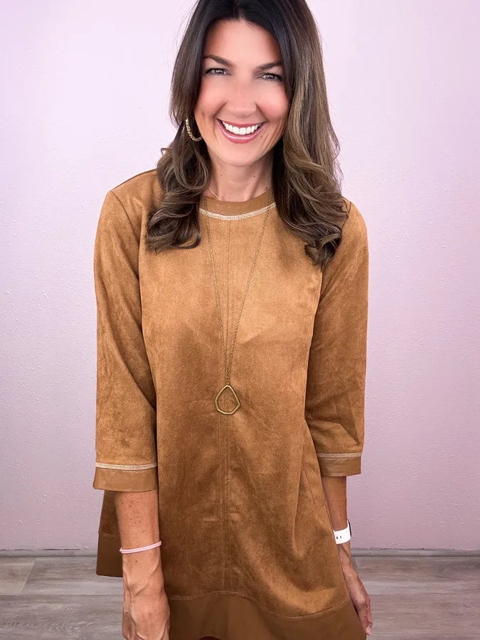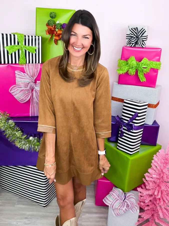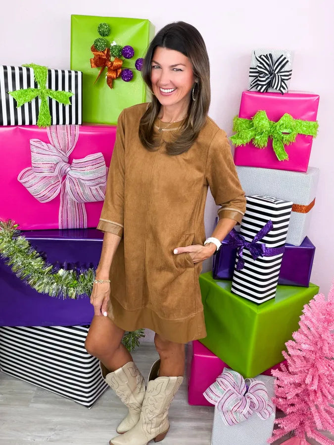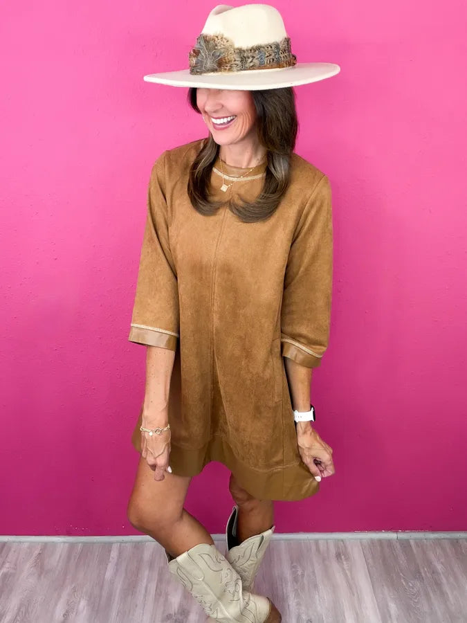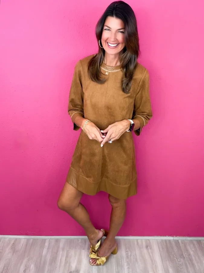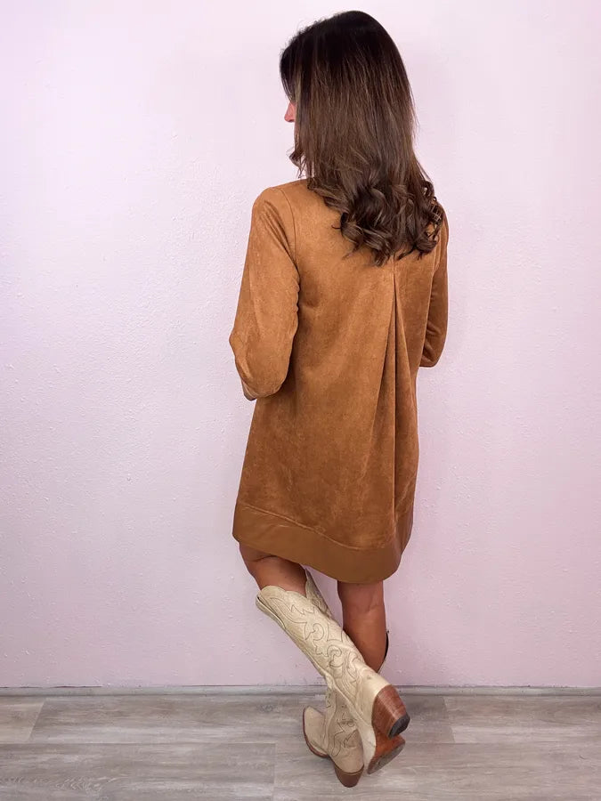 Perfect for the coming season! This suede dress is ready to help you turn heads this fall!