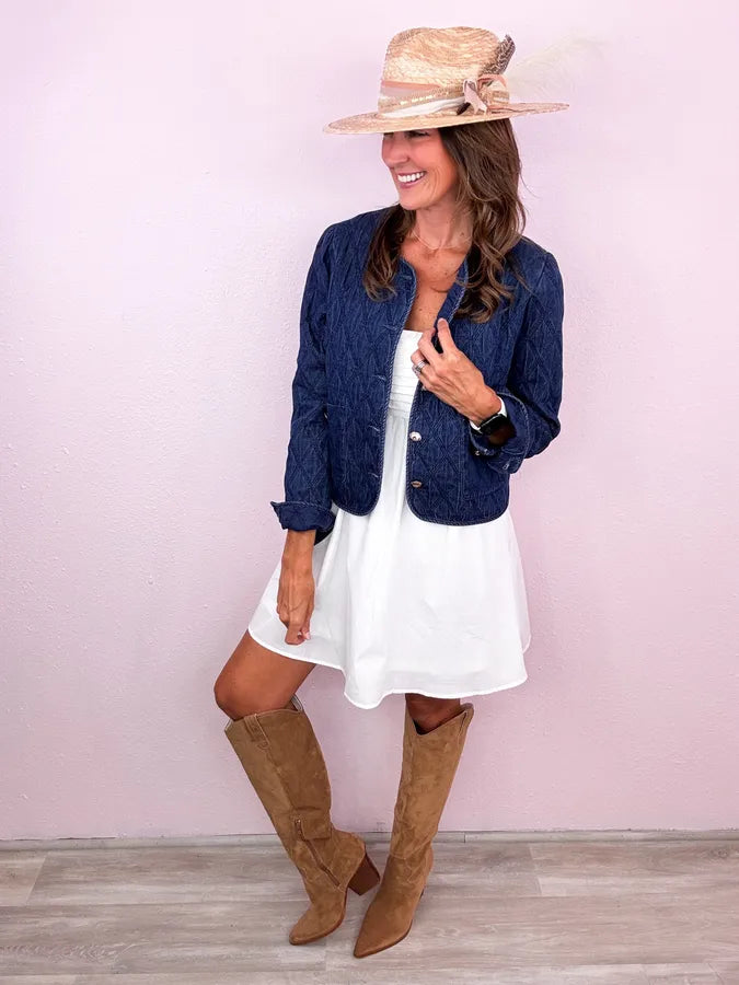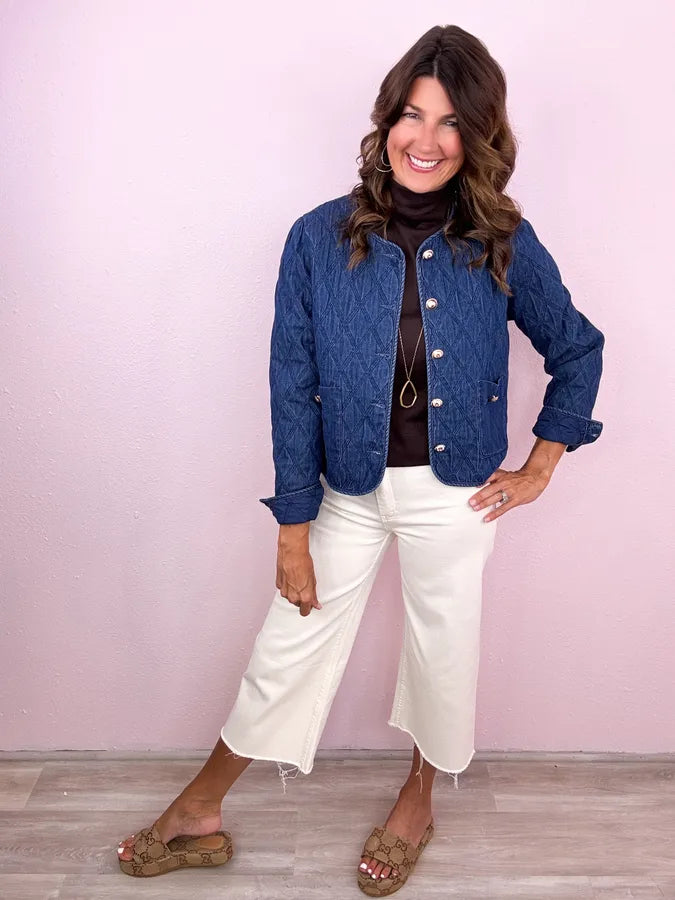 The layer to love! This quilted denim jacket is ready to add to any outfit & keep you looking trendy!