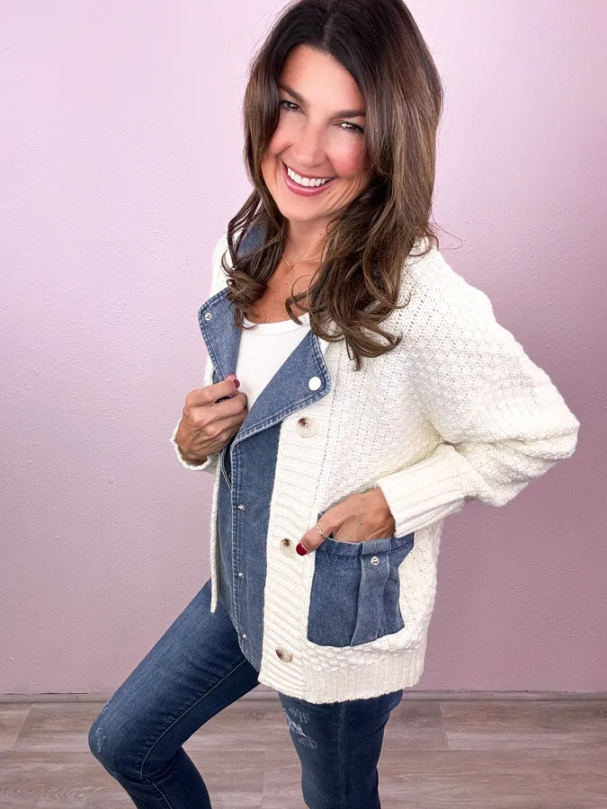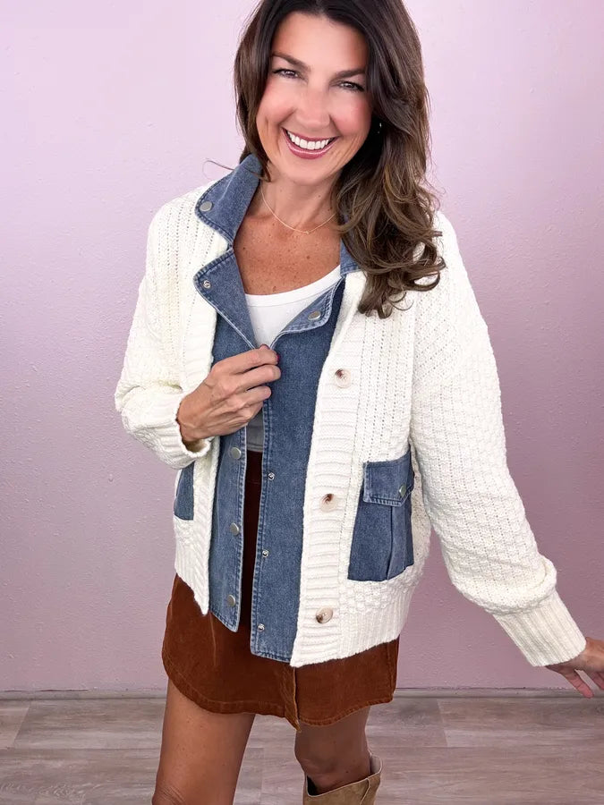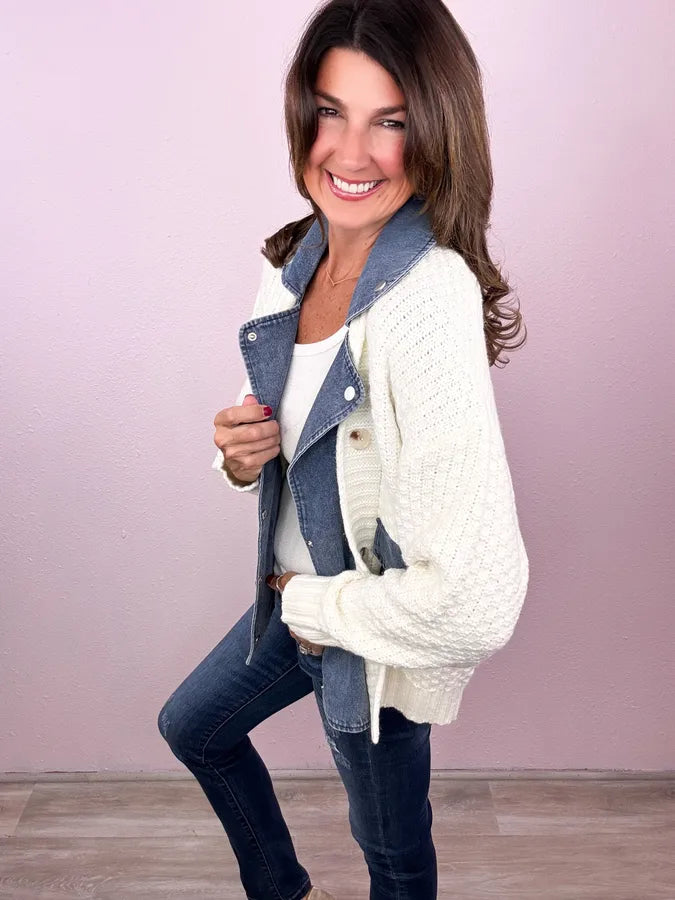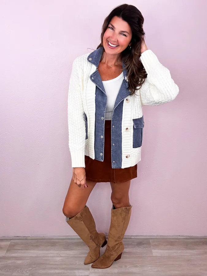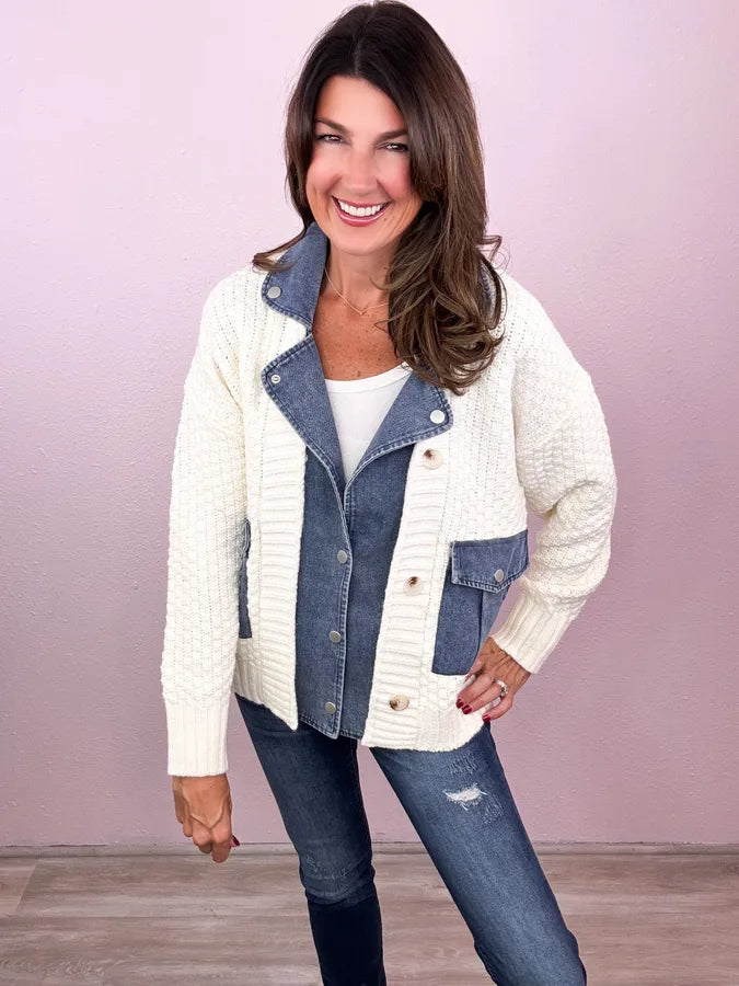 • Knit + denim fabric