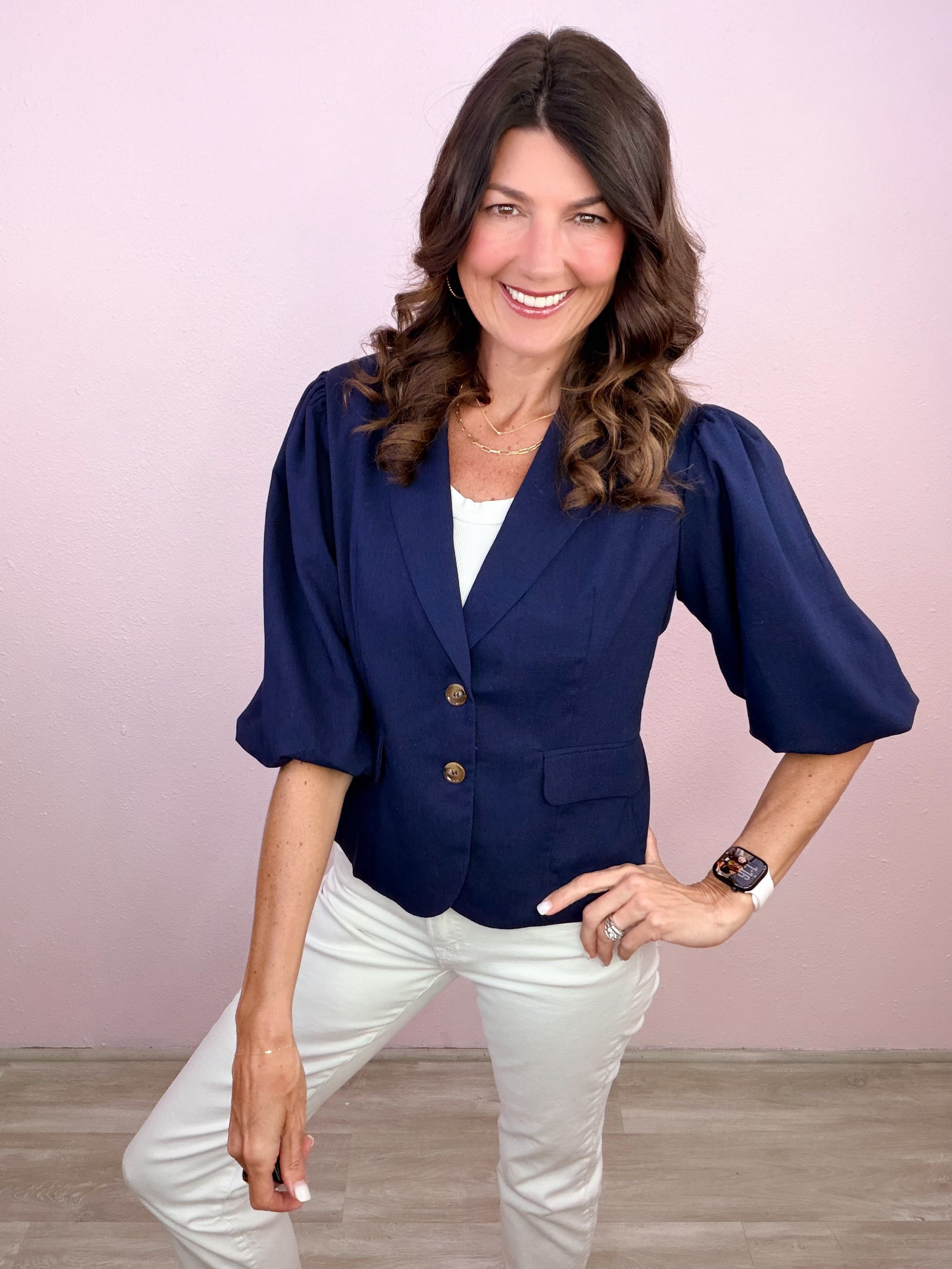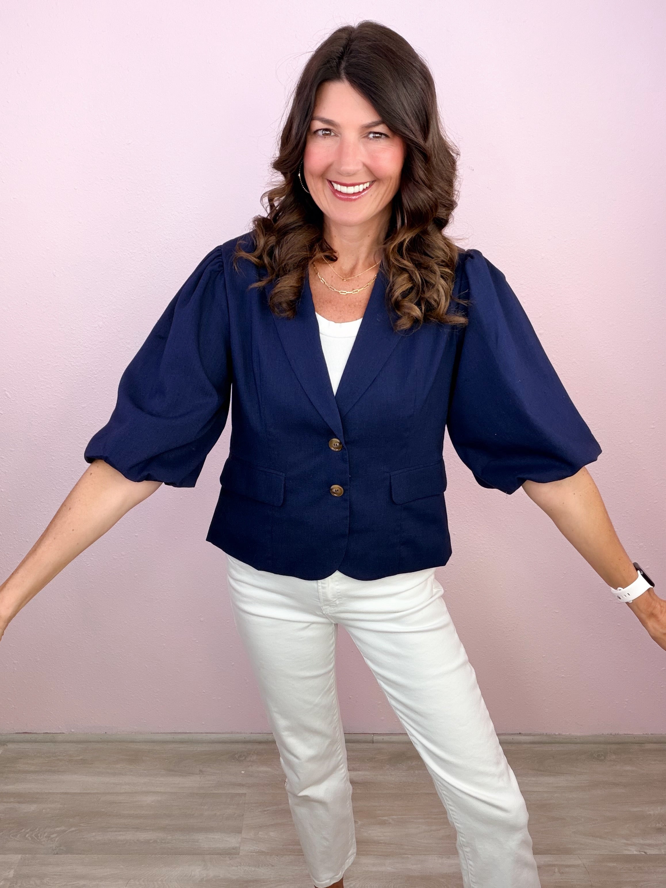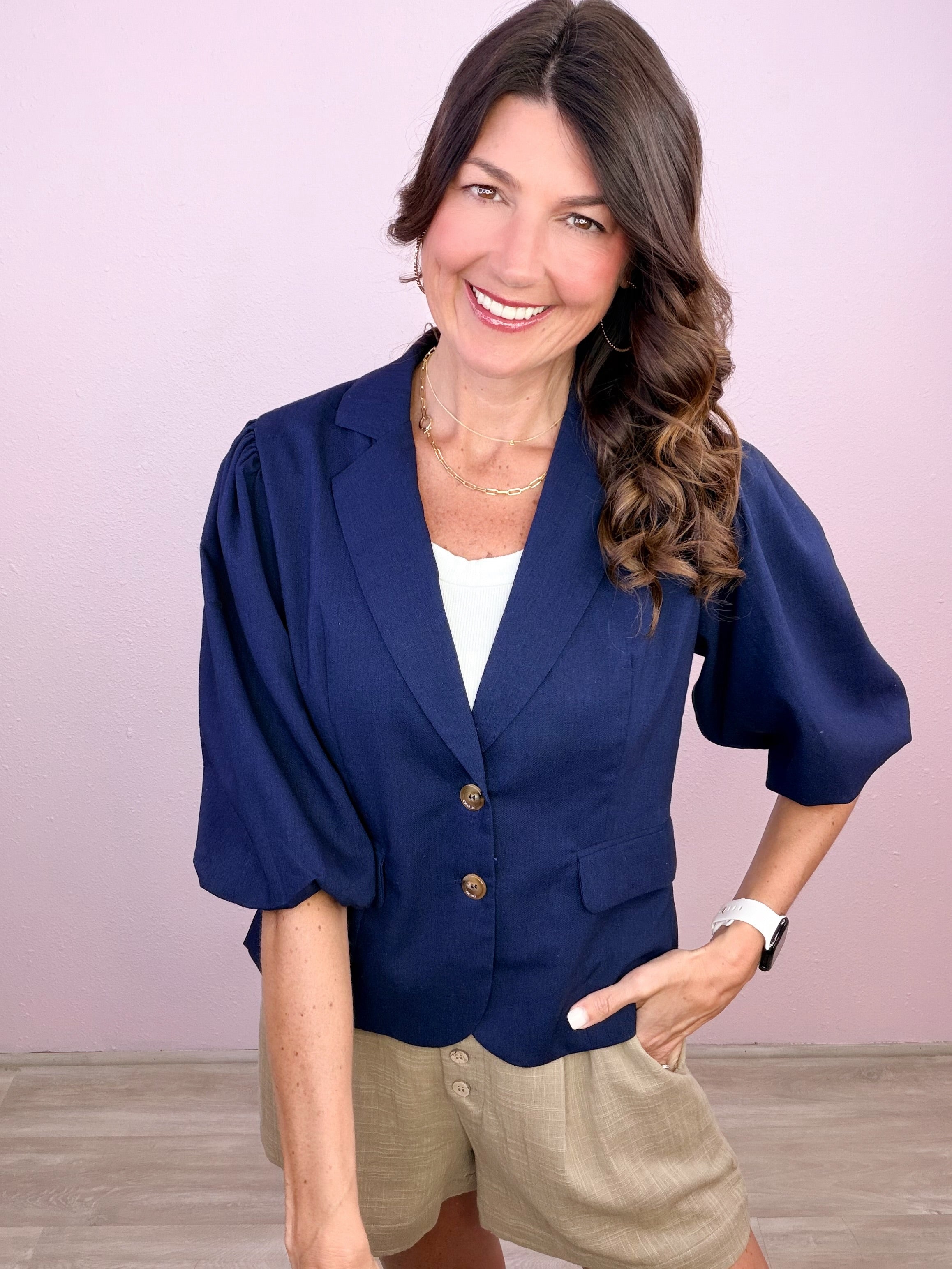 Polished with a feminine twist—this structured staple brings instant confidence with its flattering fit and statement sleeves!