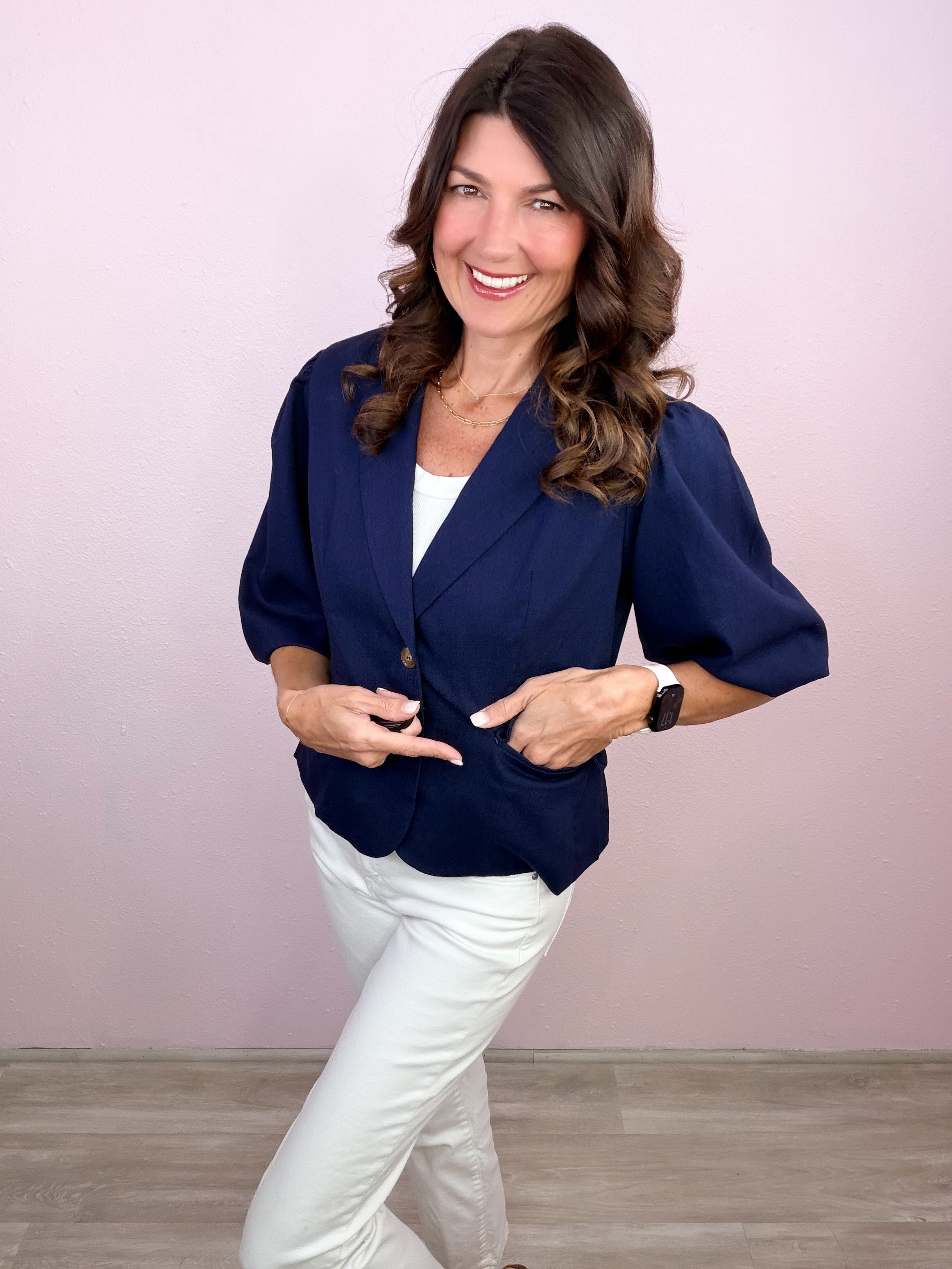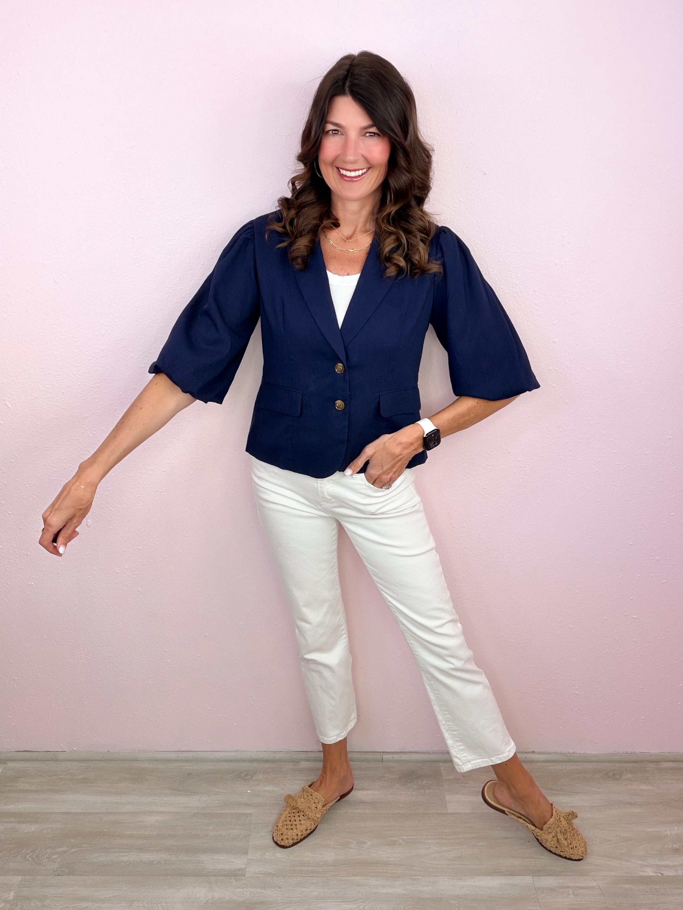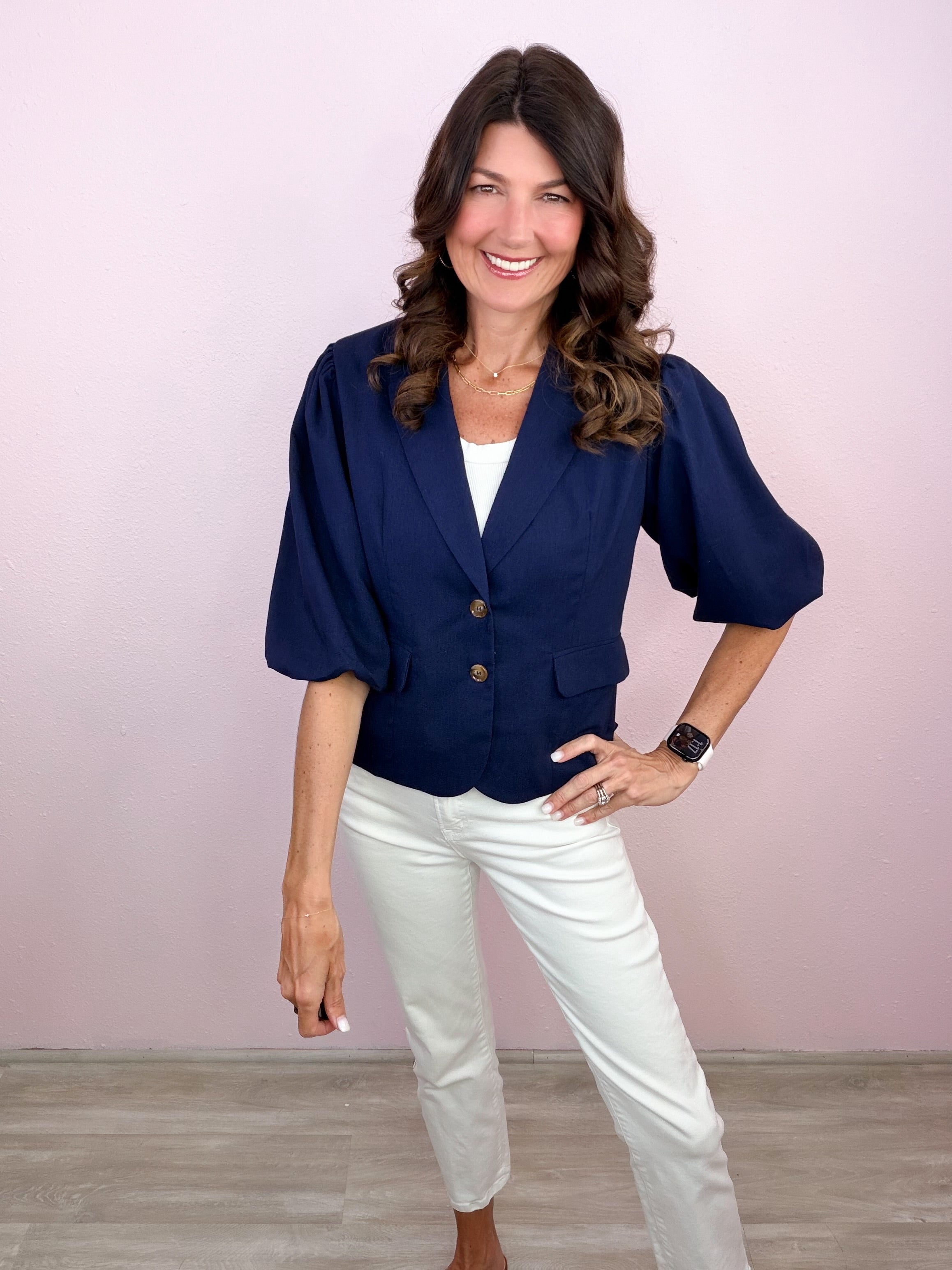 Polished with a feminine twist—this structured staple brings instant confidence with its flattering fit and statement sleeves!