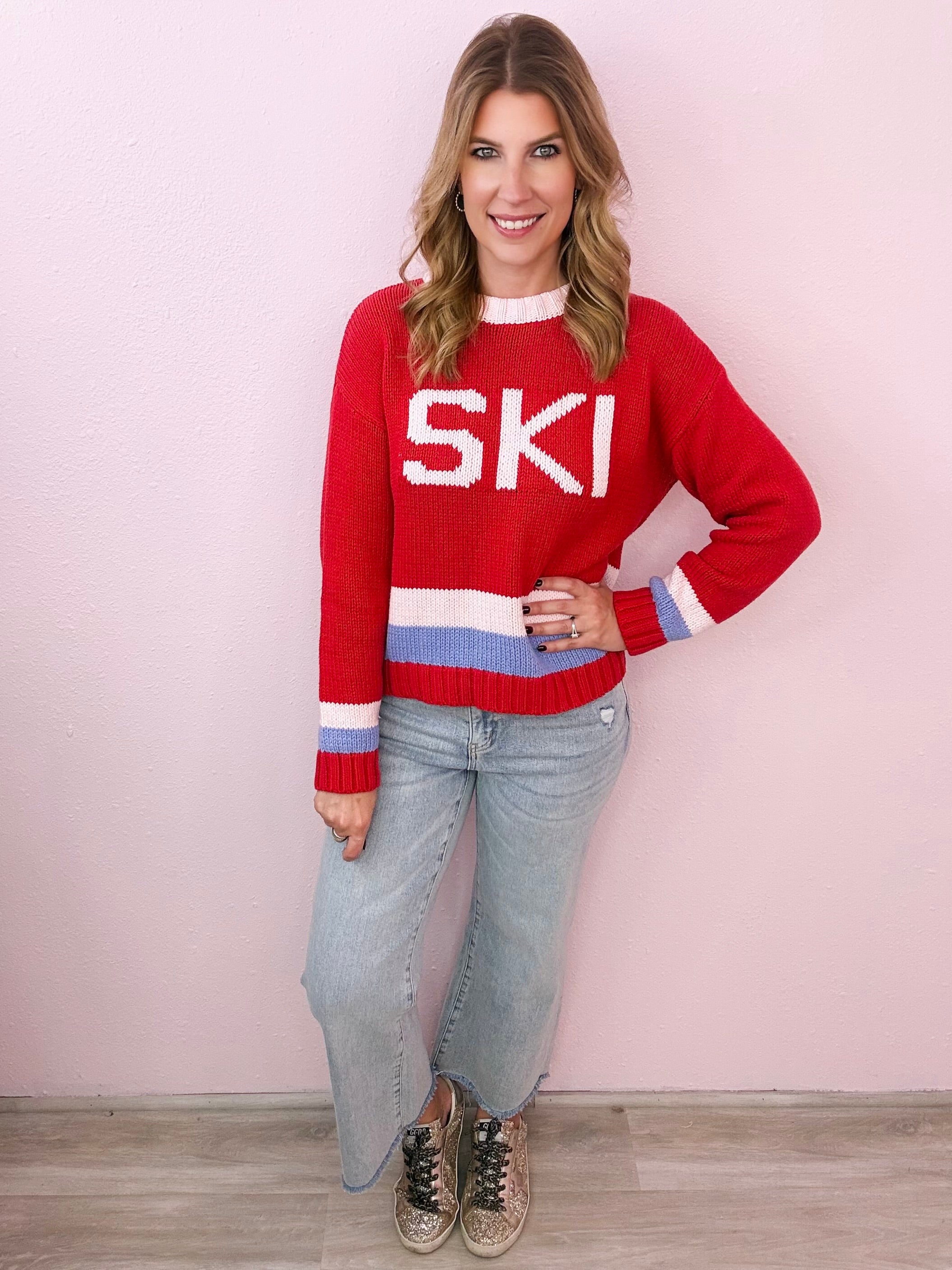 We love this adorable sweater! Its so cozy cute and right on trend for the season!