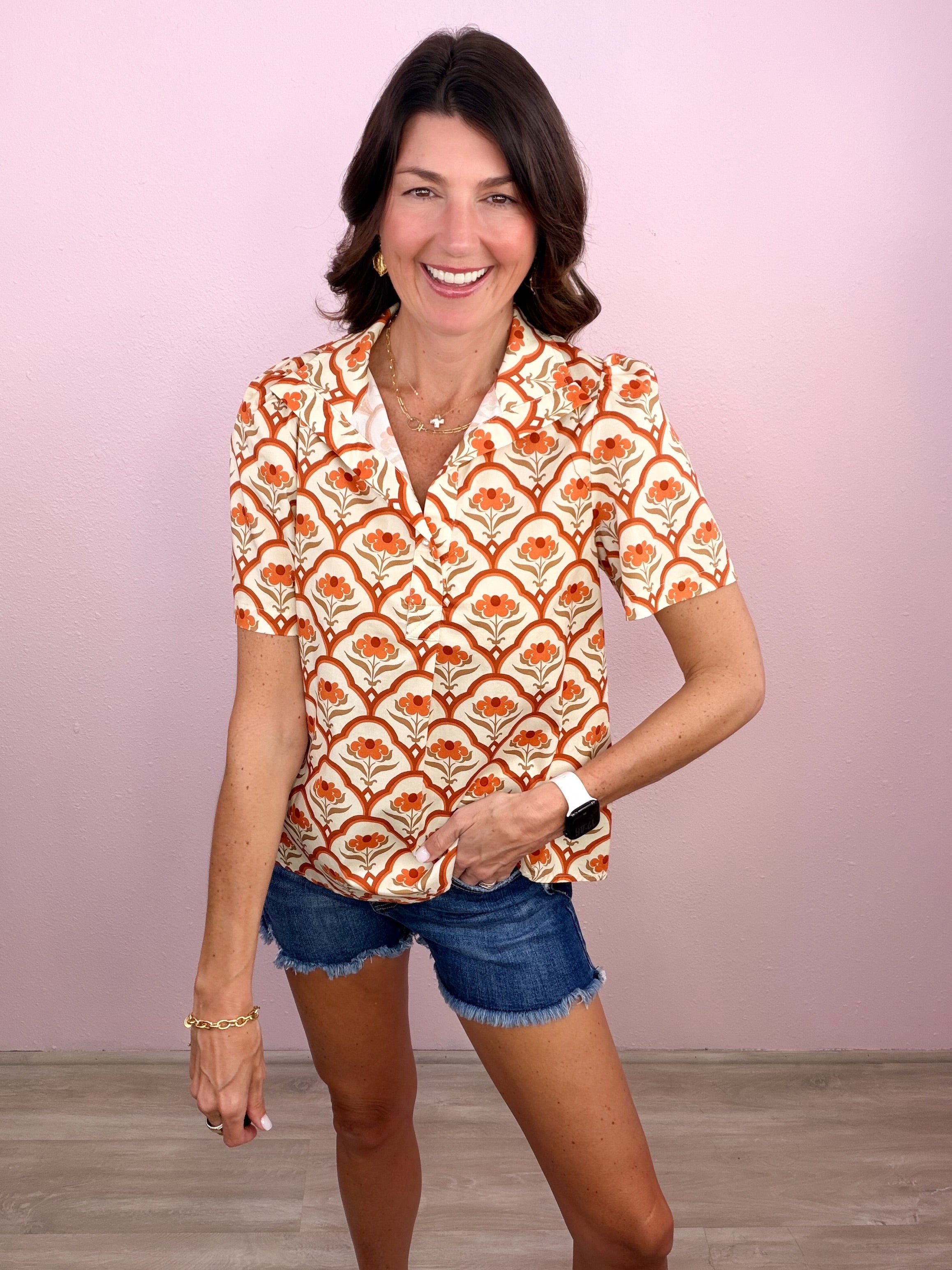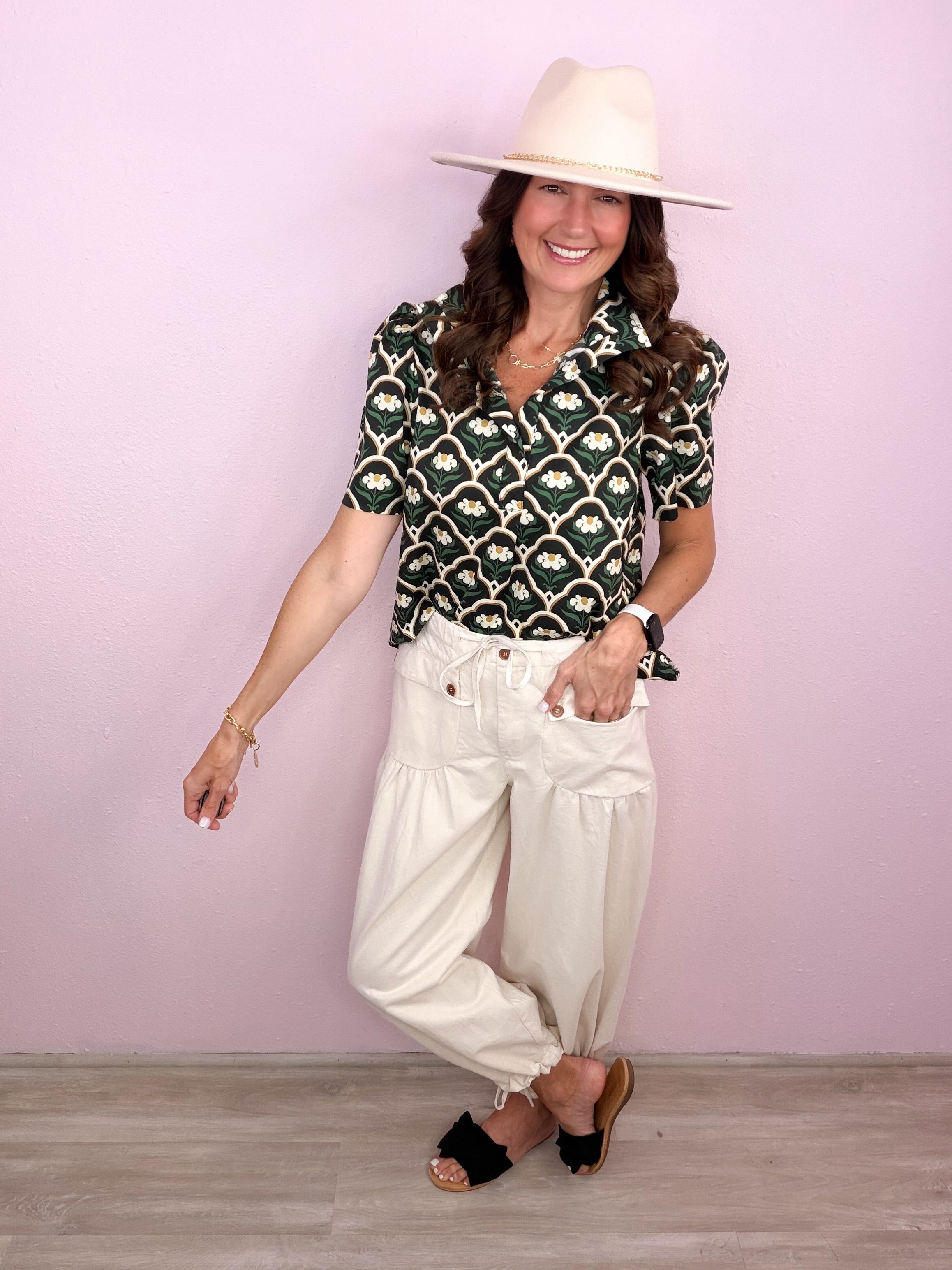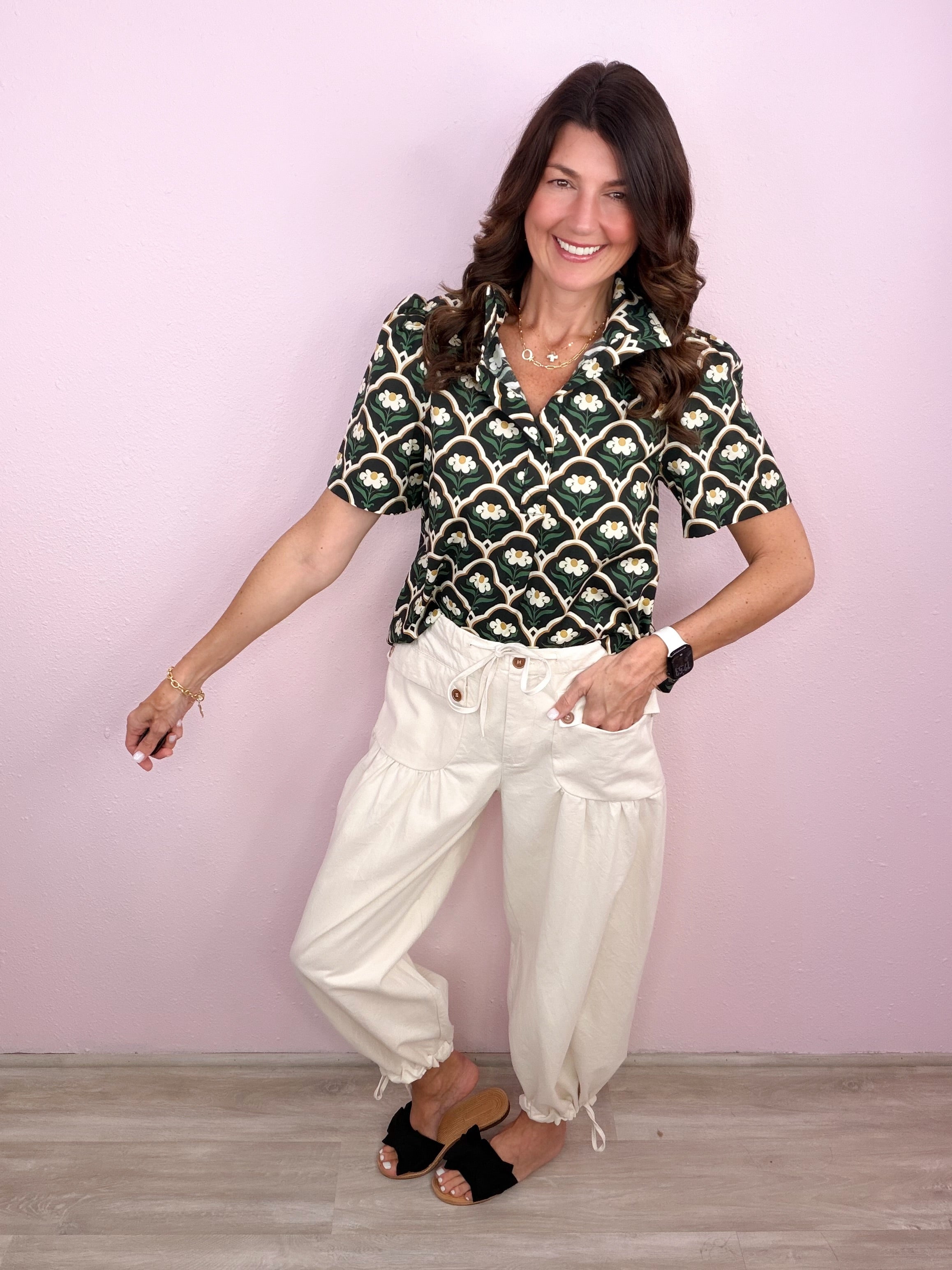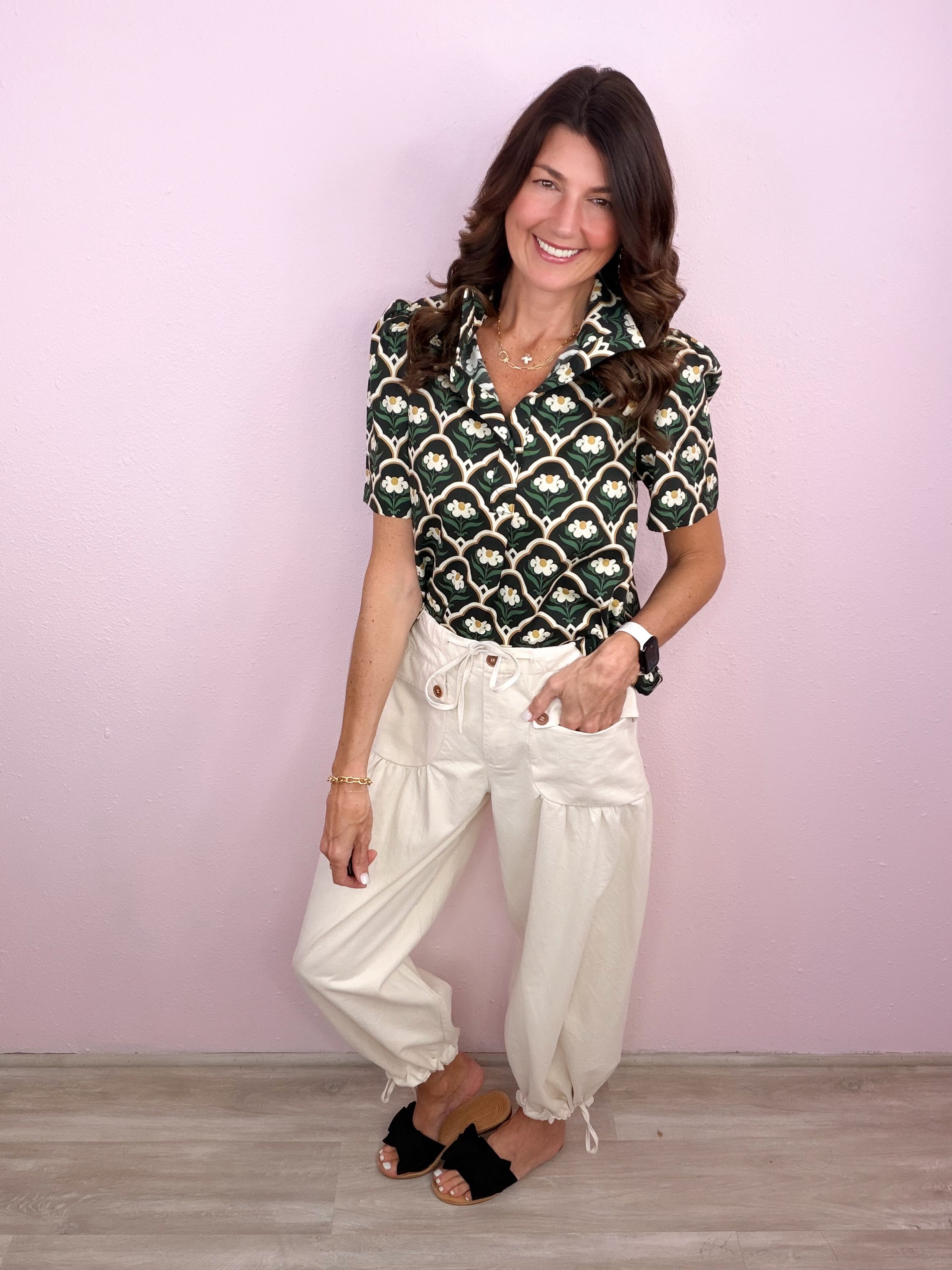 - Puff shoulder short sleeves