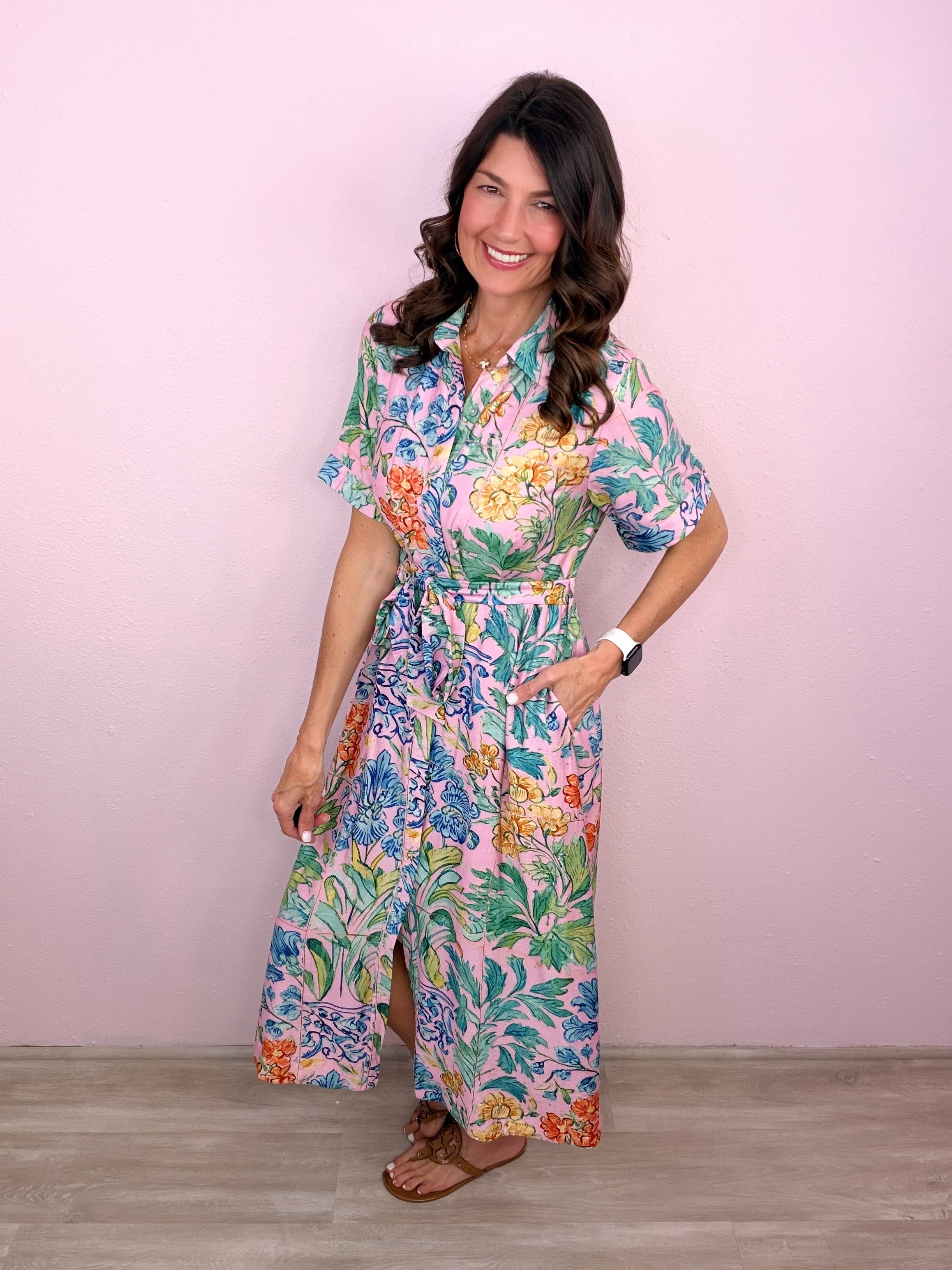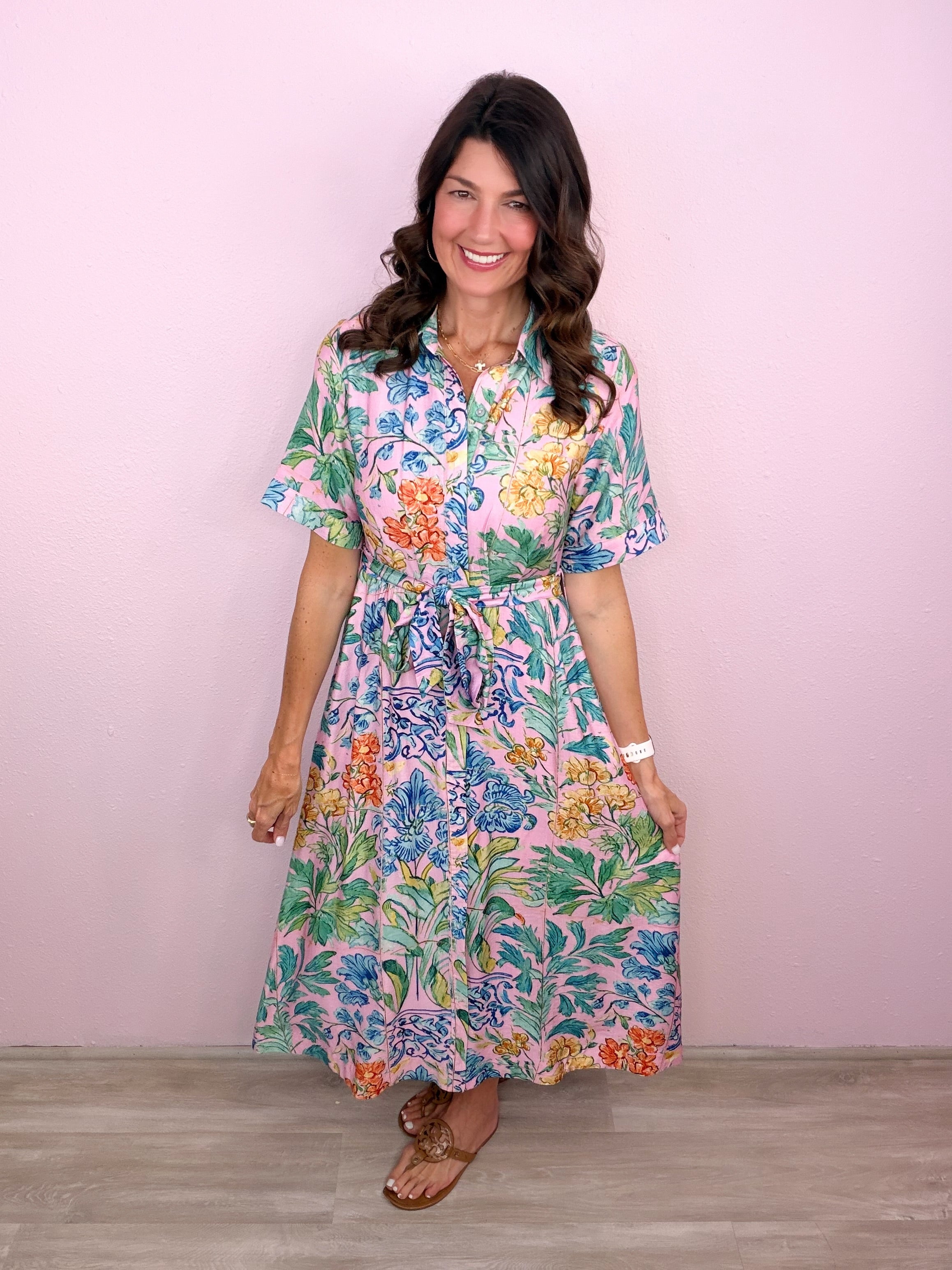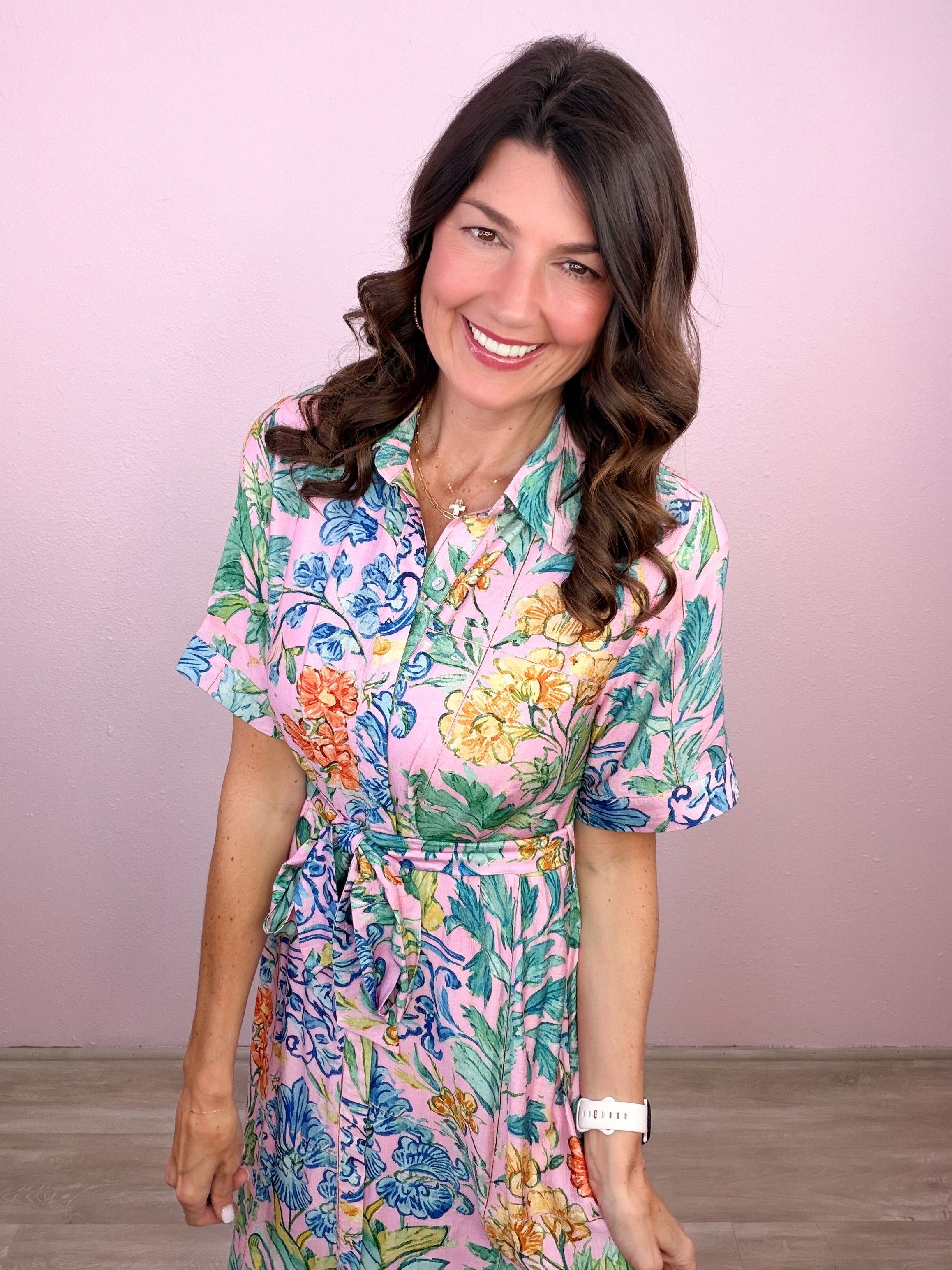 Effortless and refined, this button-front midi is an easy go-to for warm-weather days and casual occasions!