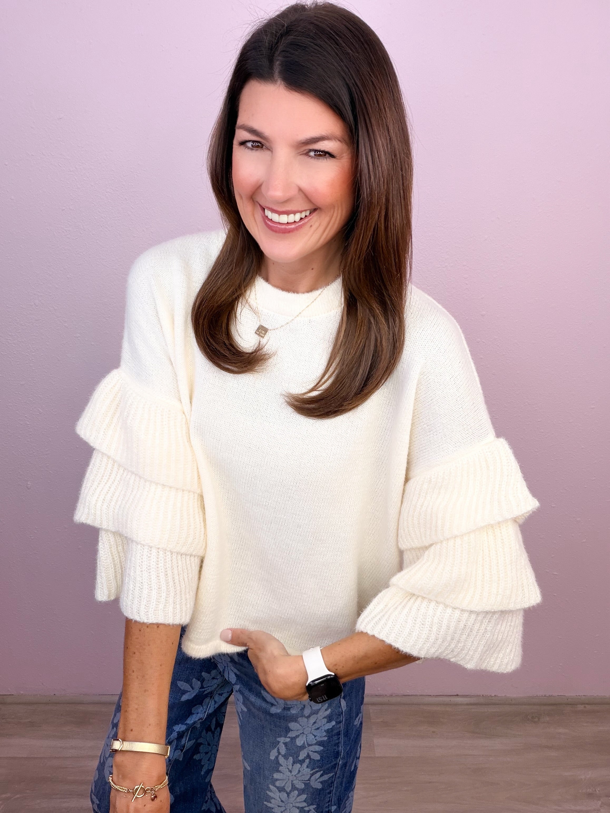 • Tiered ruffle sleeves