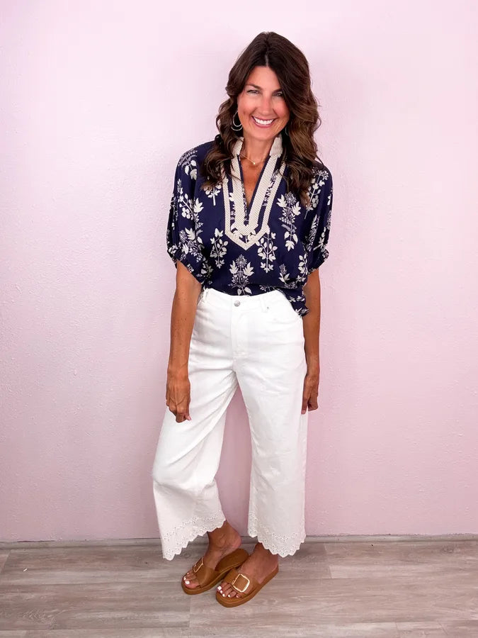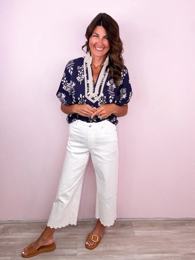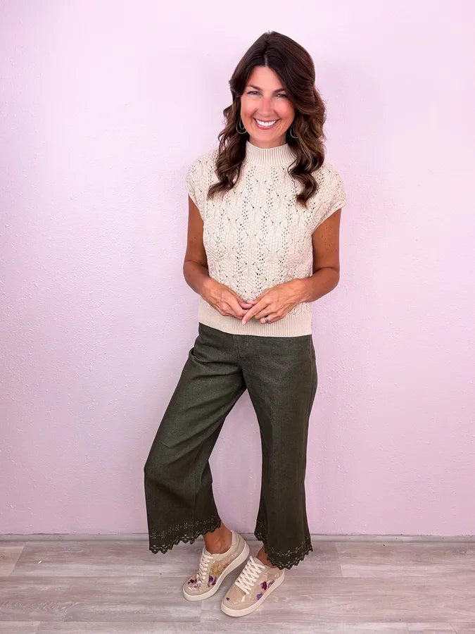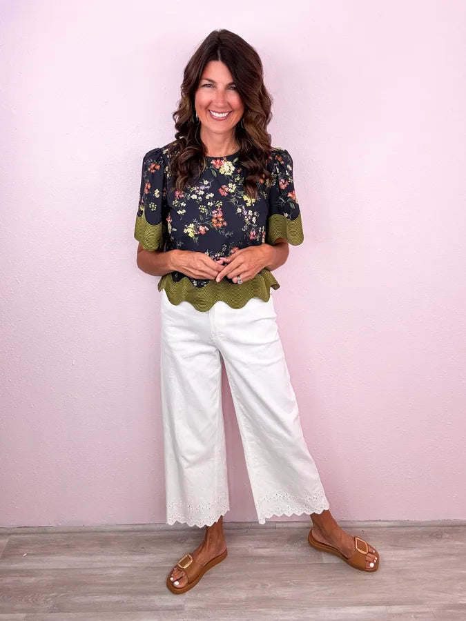 How adorable are these - the perfect wide leg style with the most charming eyelet detailing!
