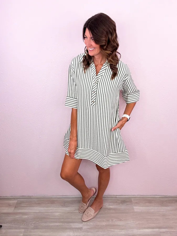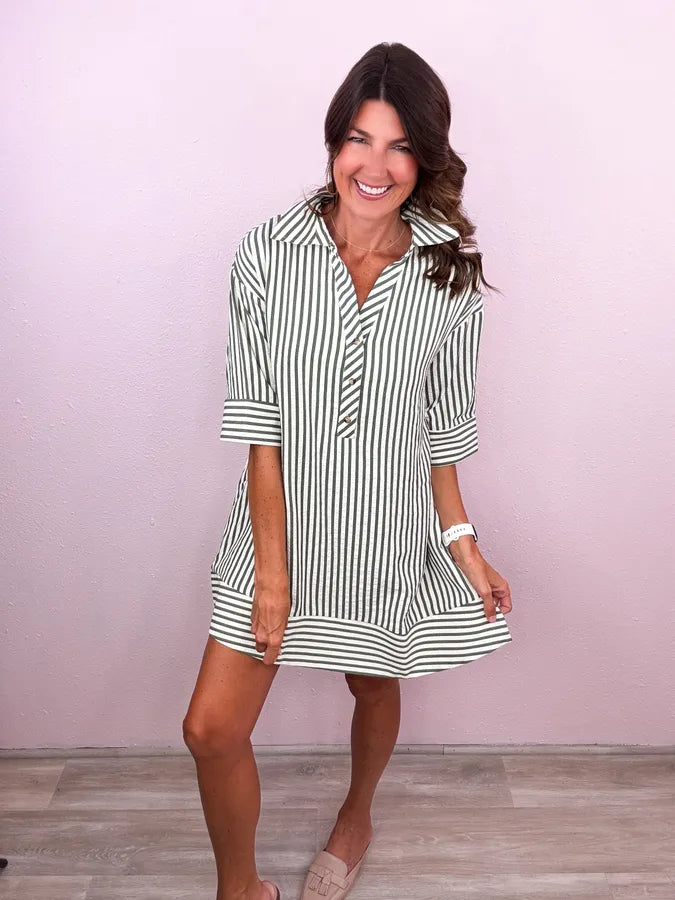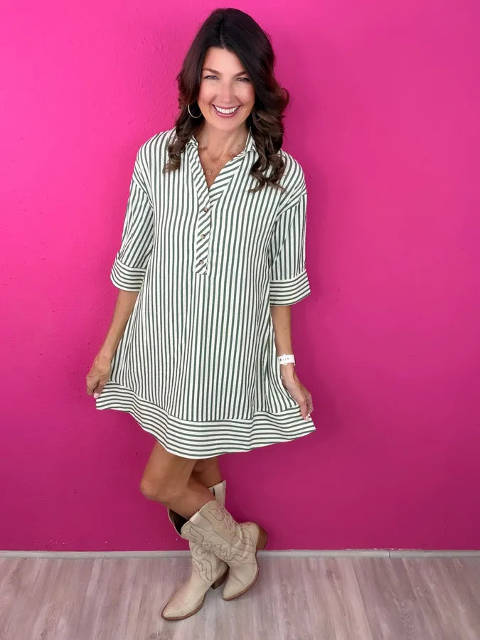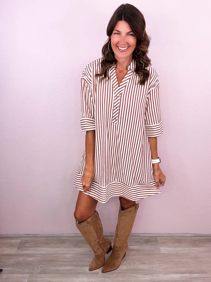You had us at stripes! This cutie is the perfect classic cut & ready to take on all those fall events!