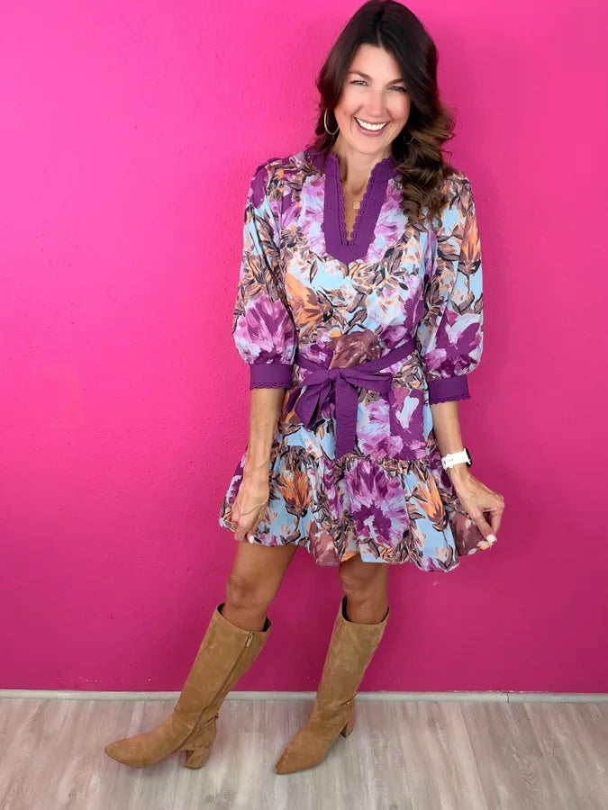 A fall floral is the style agenda! This adorable number has a stunning botanical print + pockets + the cutest contrast trim!