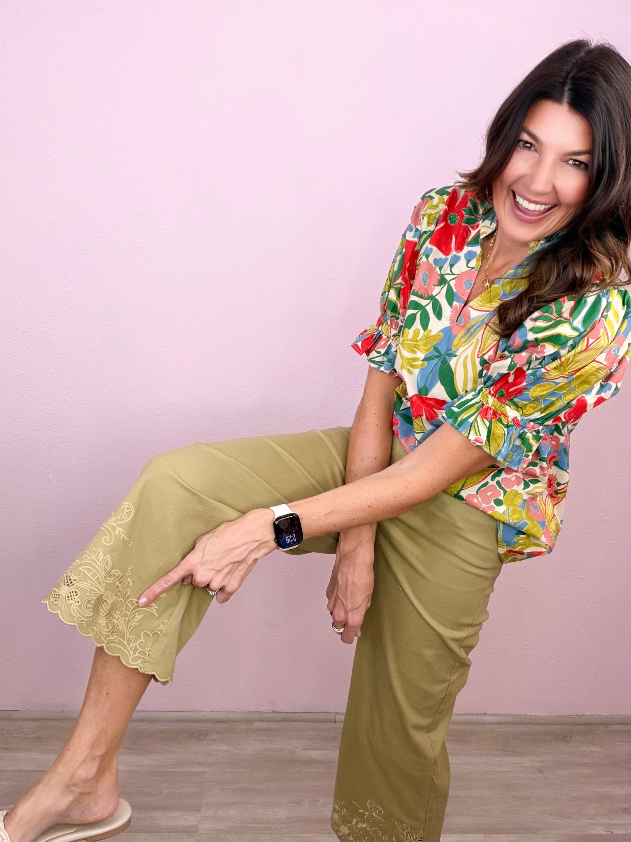 The most comfortable pair of denim finished with delicate floral details at the cuffs-sweet while making a statement!