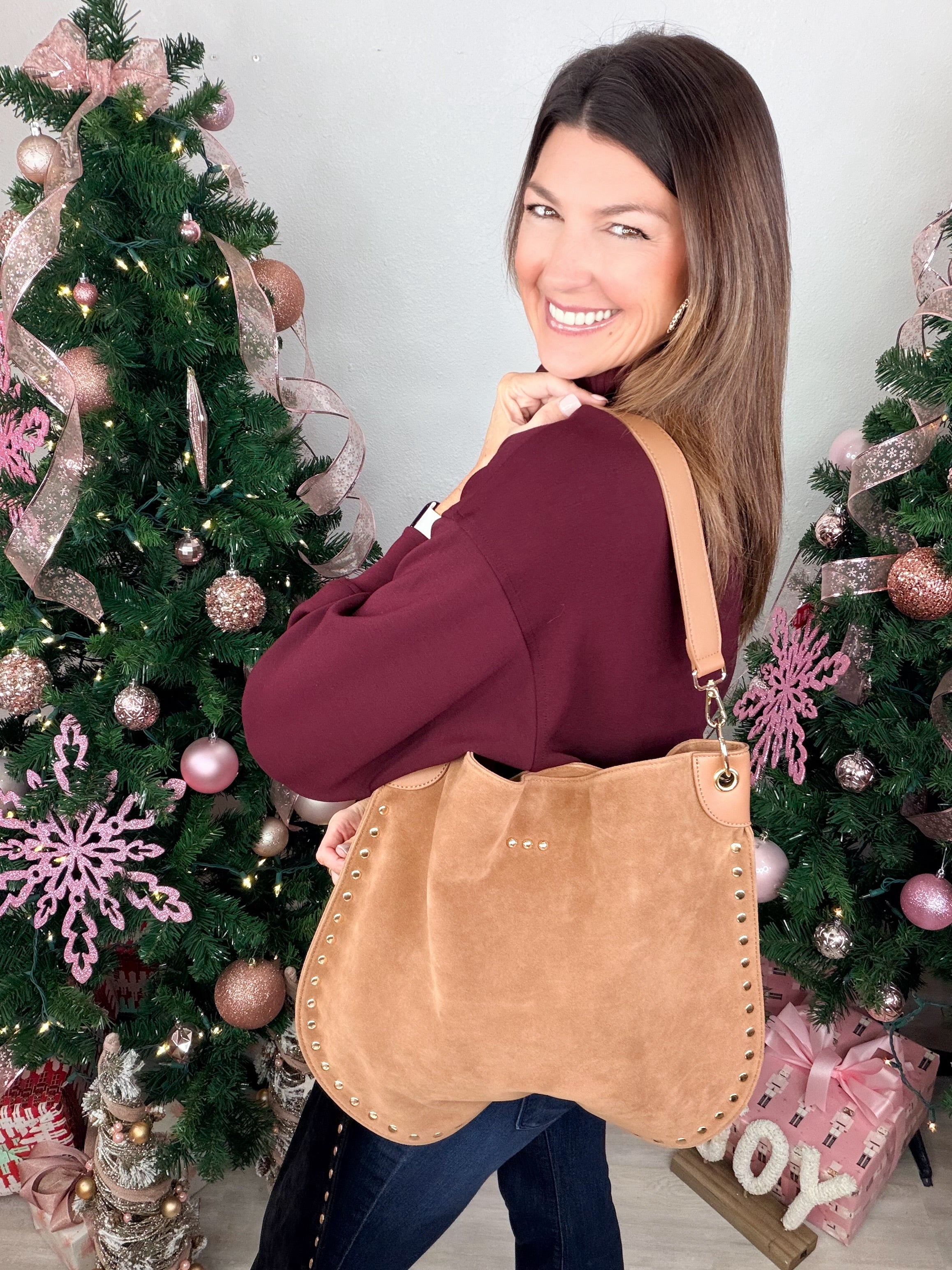 Pretty Simple | Rosalie Rivet Suede Hobo Bag