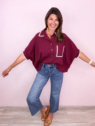 • Collared v neckline