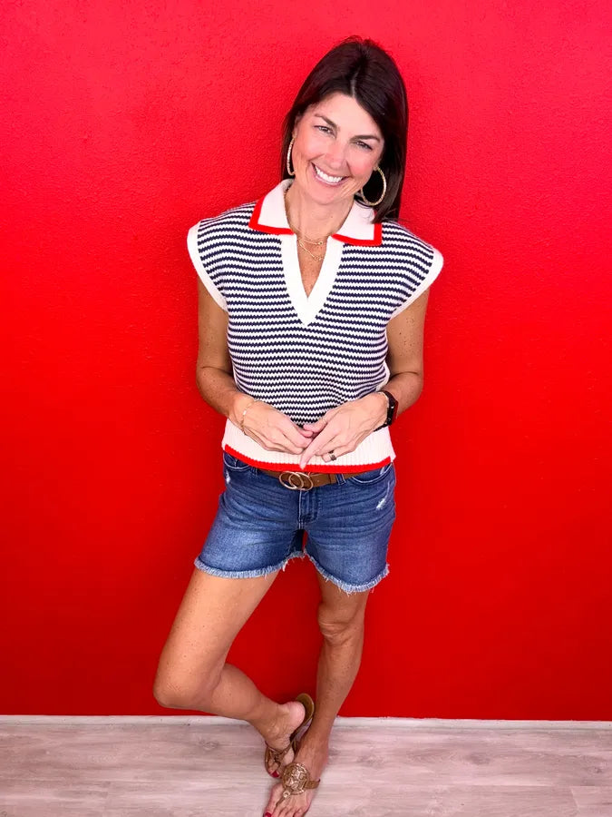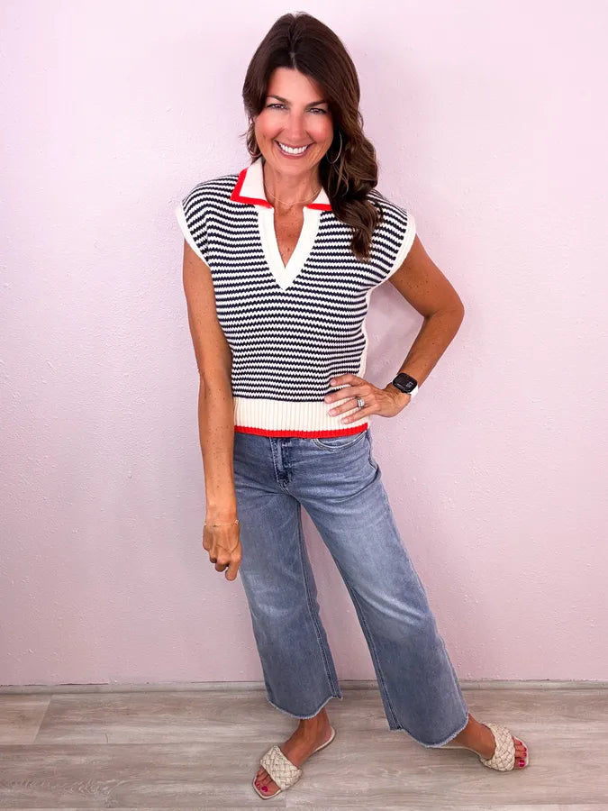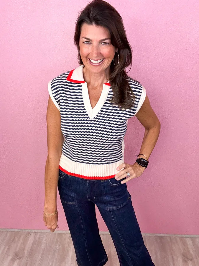 THML Sleeveless Knit Collared Top