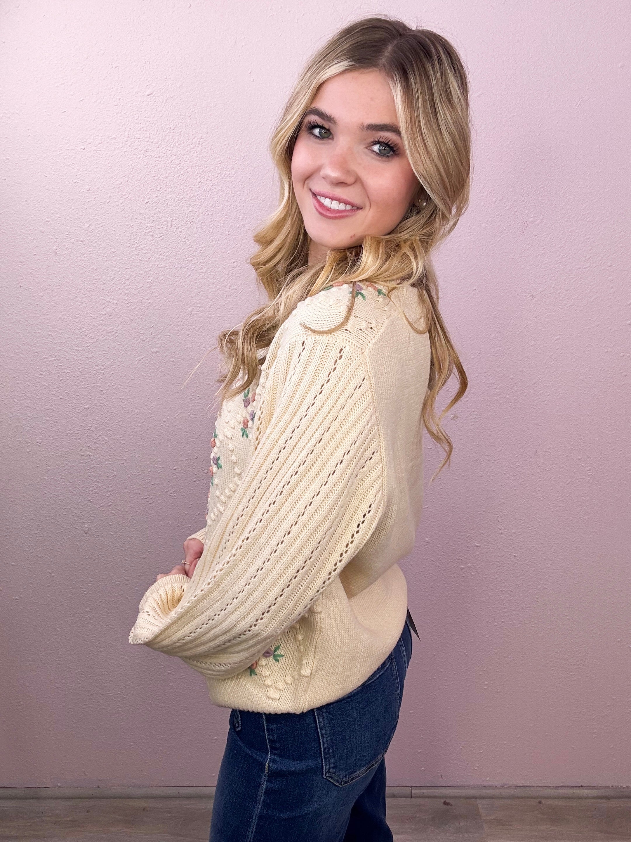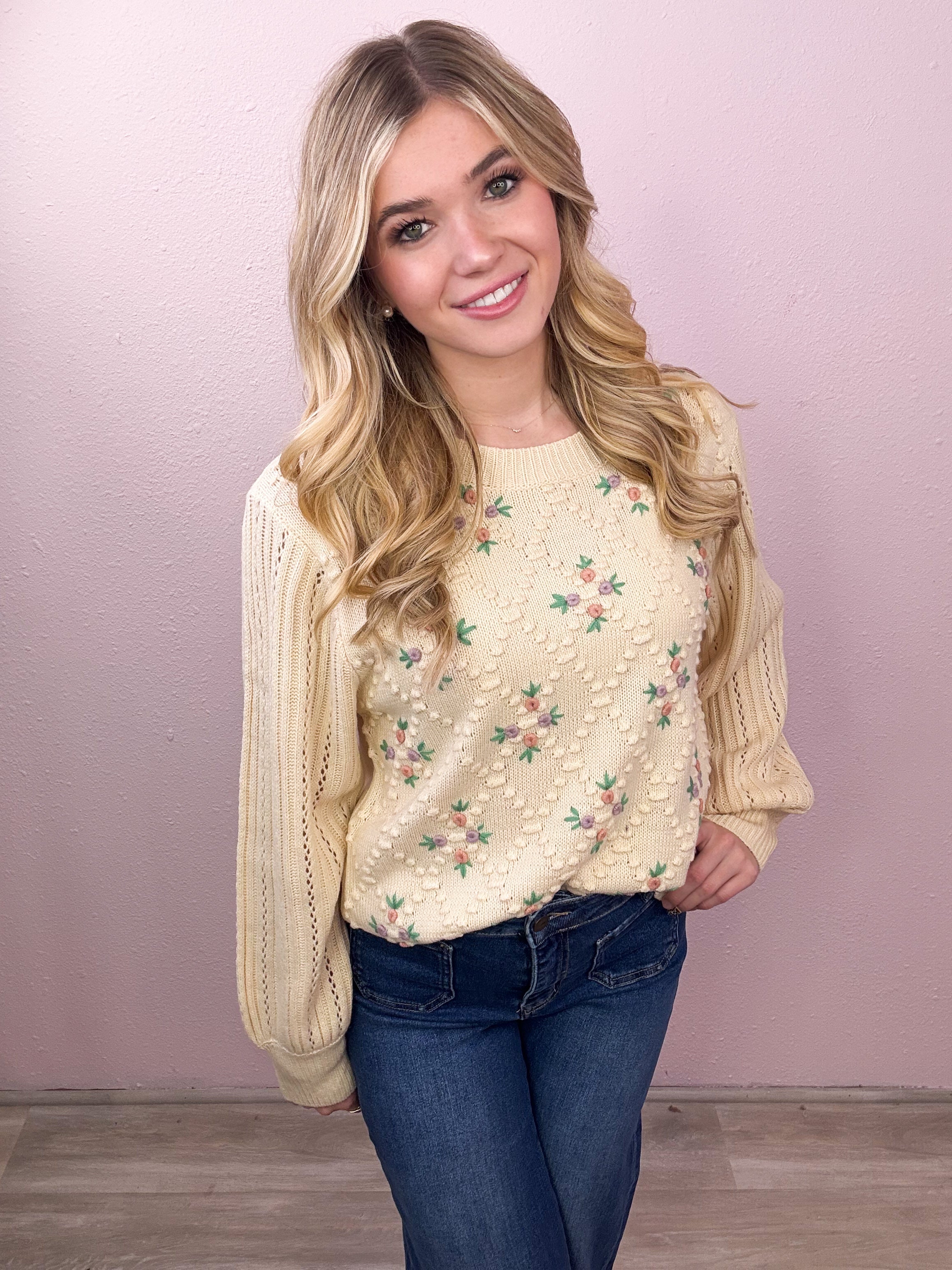 Whimsical yet wearable! This textured knit sweater blends cottagecore nostalgia with modern versatility - style it with denim, skirts, or layered over a lace dress for a sweet twist on everyday comfort.