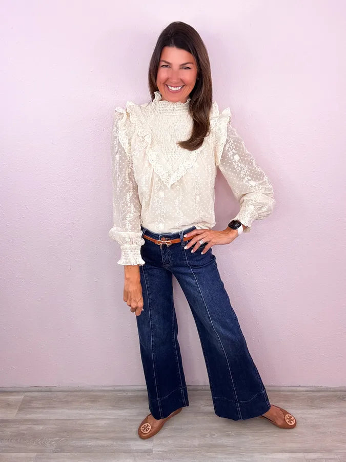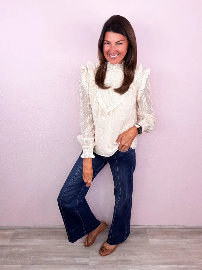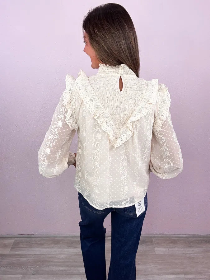 A timeless nod to heirloom dressing, this blouse blends boho sweetness with Western-inspired heritage!