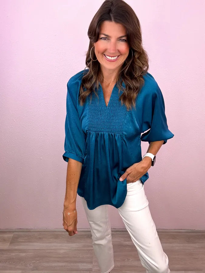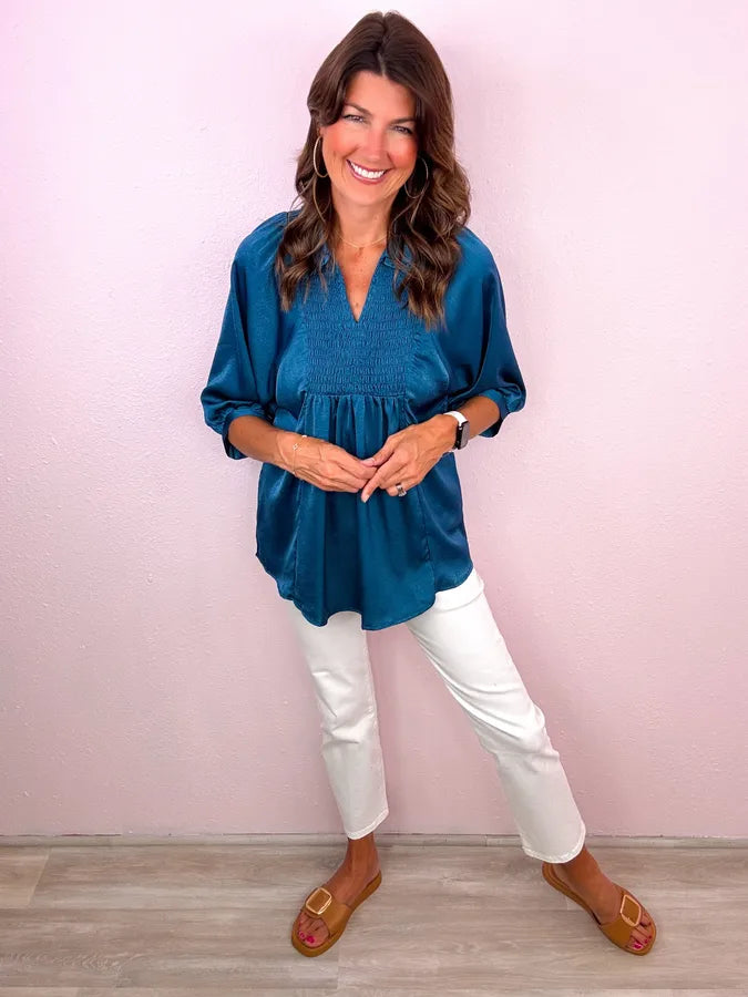 Easy going (fabulous) solid! Just as easy to throw on and go as it is to dress up!