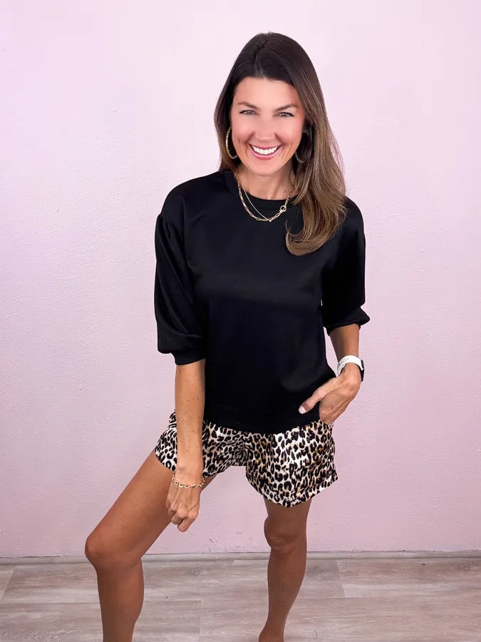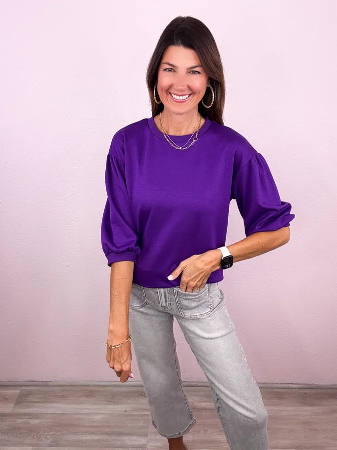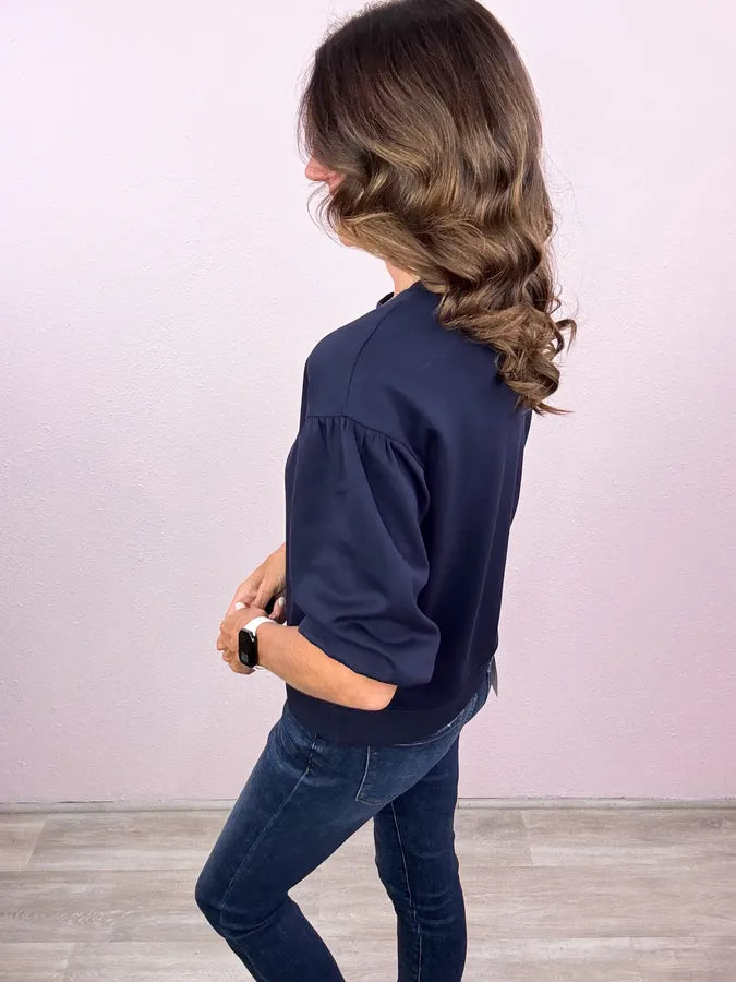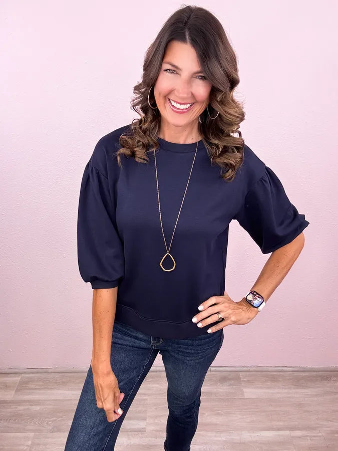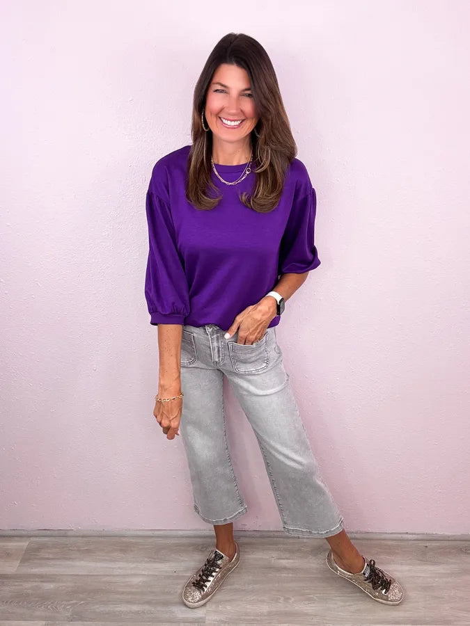 The top for all agendas! This solid sweatshirt top can do it all and you will love having it in your closet!