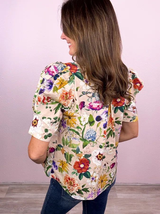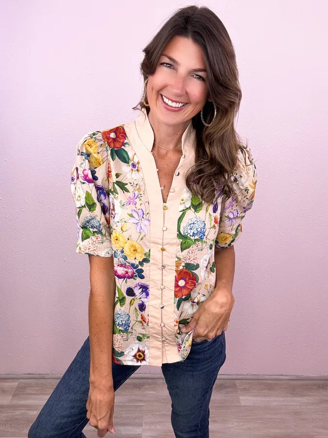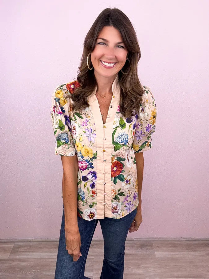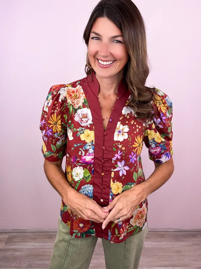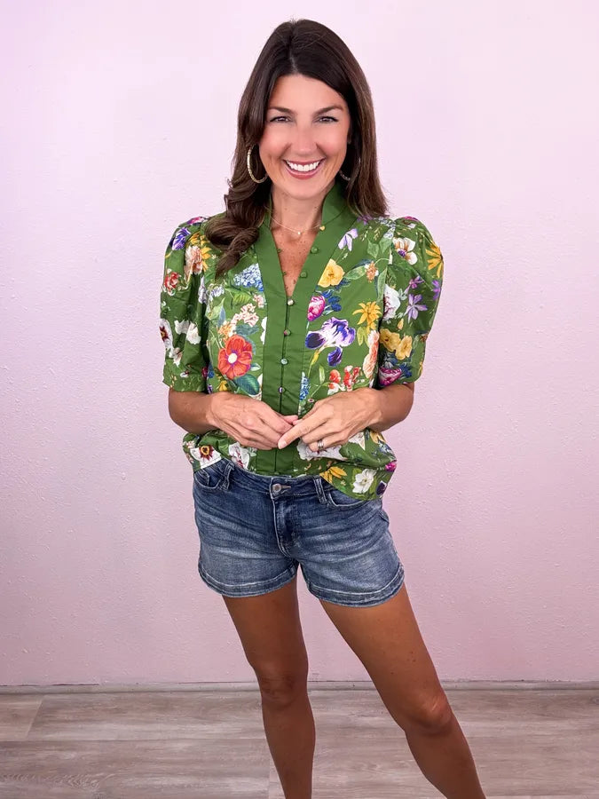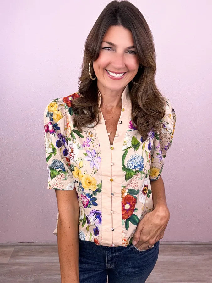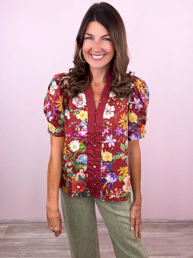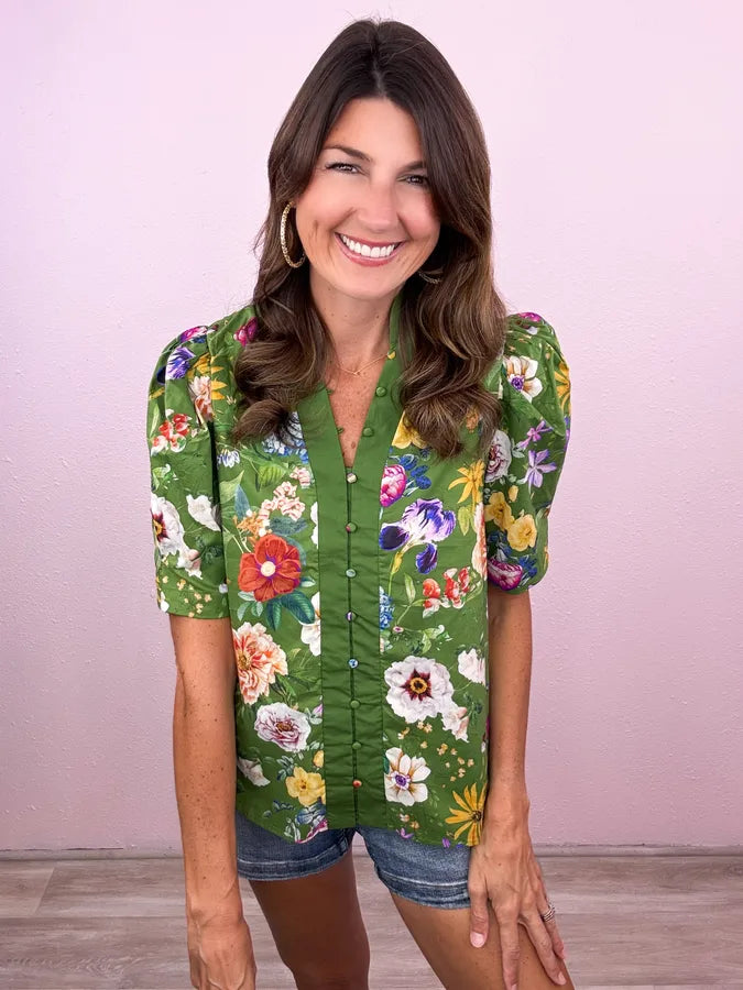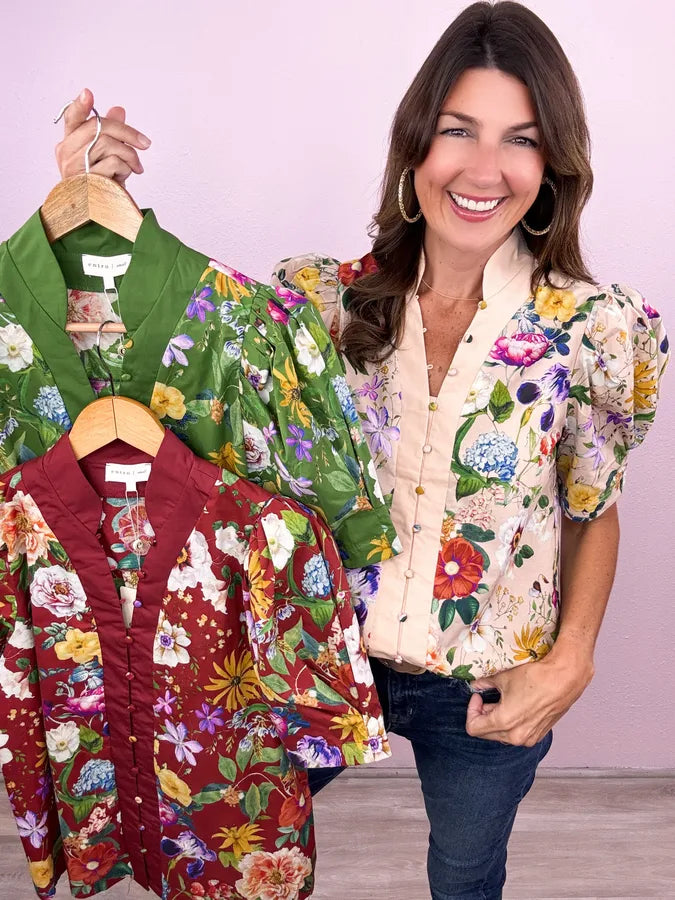 A floral dream we are all over! This is so beautiful and the contrast trim + buttons are the perfect details!