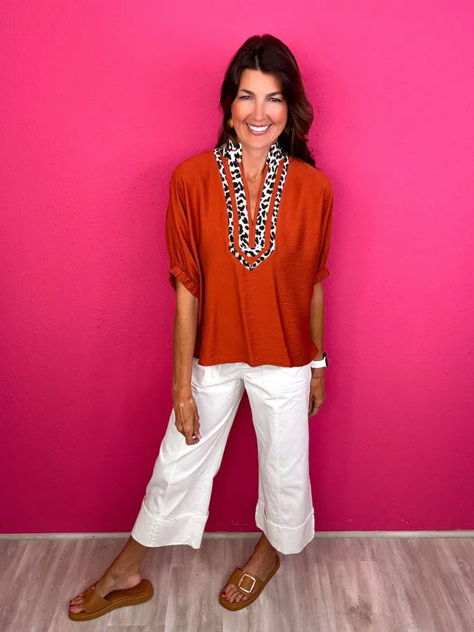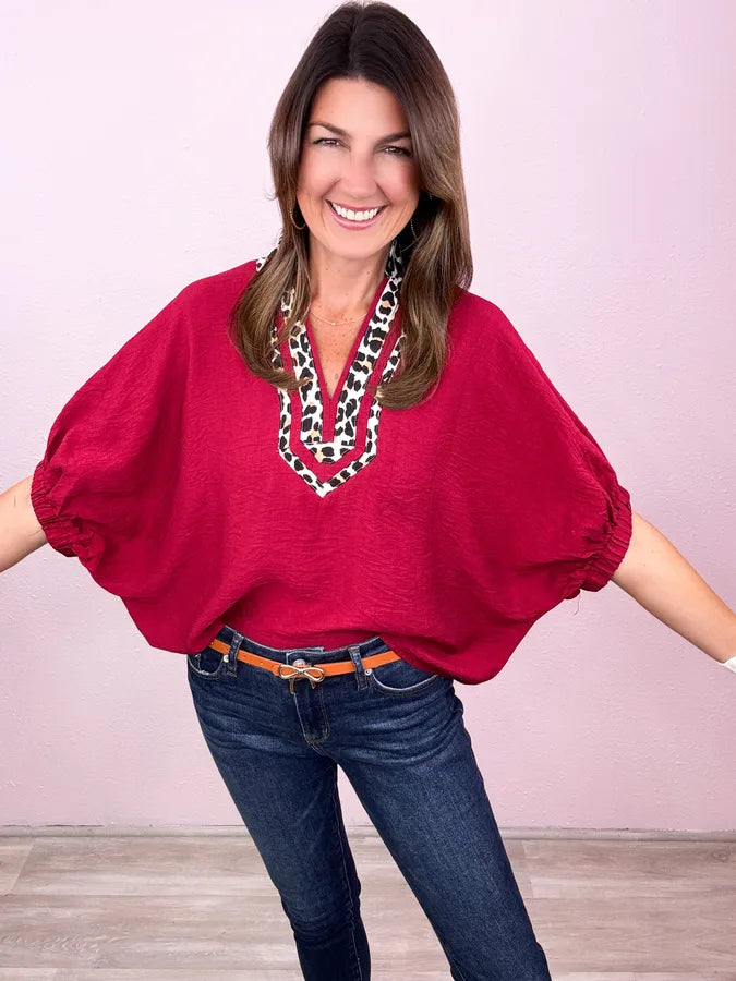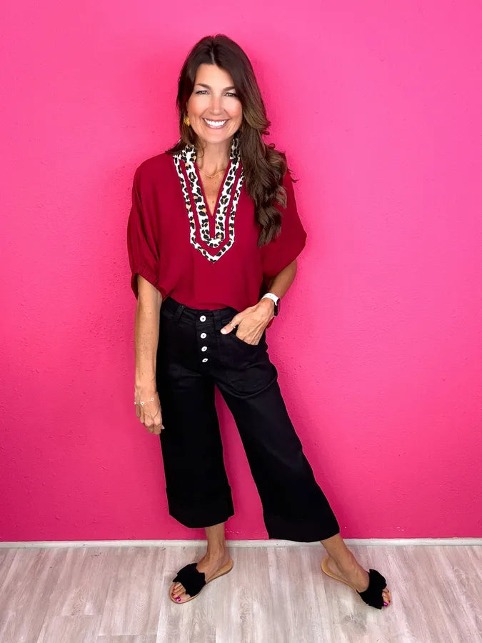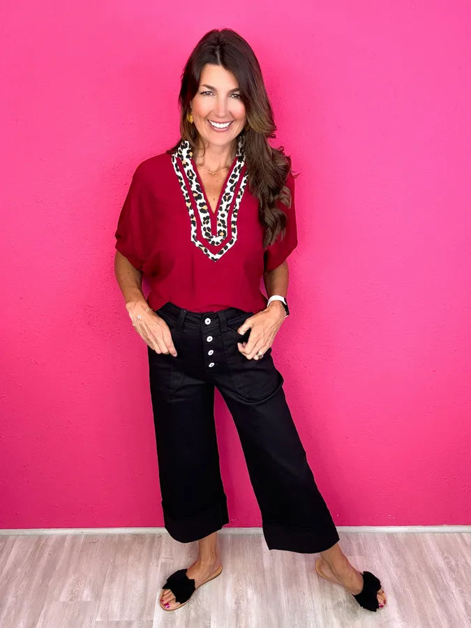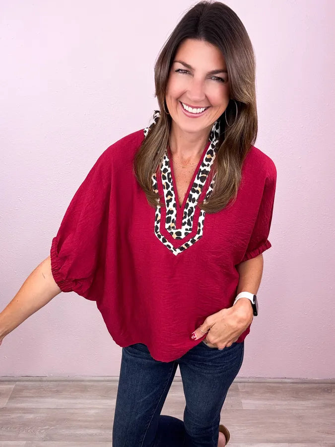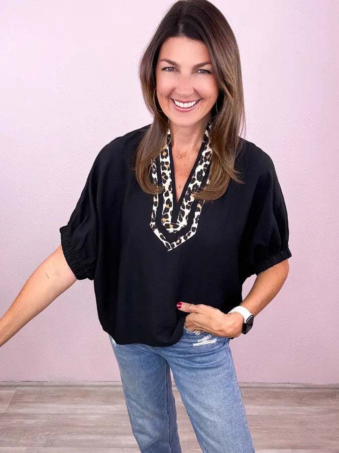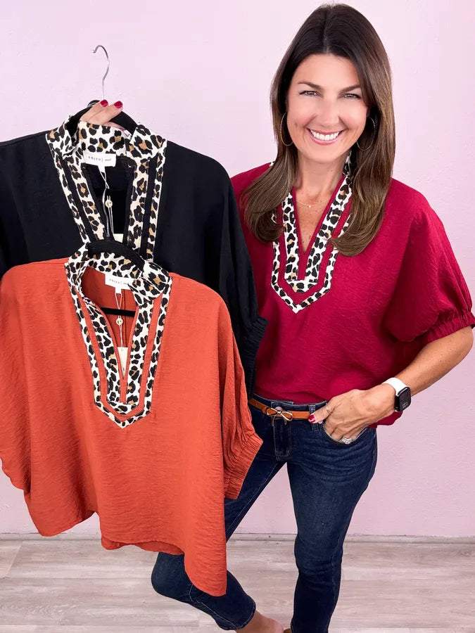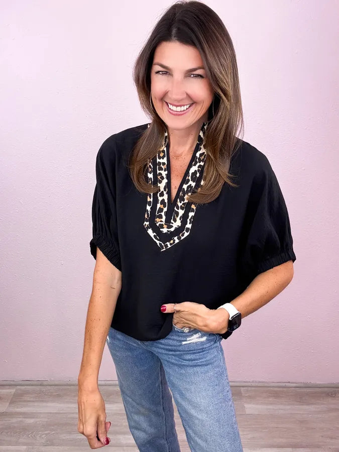 This is totally our jam! An everyday solid with the most adorable leopard print collar!
