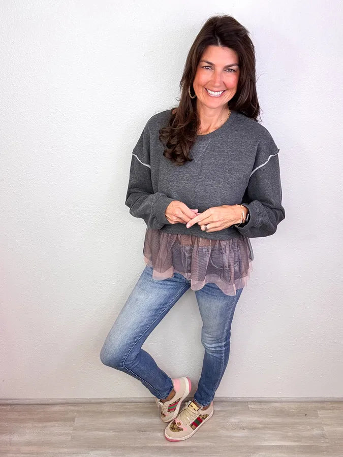 Style to be admired! This fun & effortless top is so fun for all the fall events to come - unlike the rest + perfectly detailed!