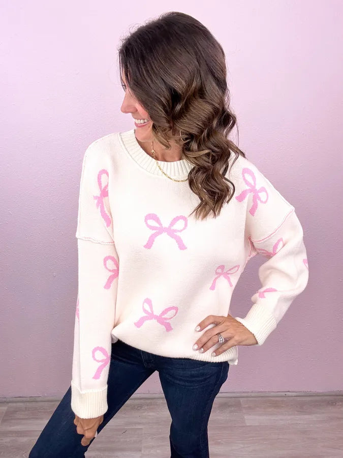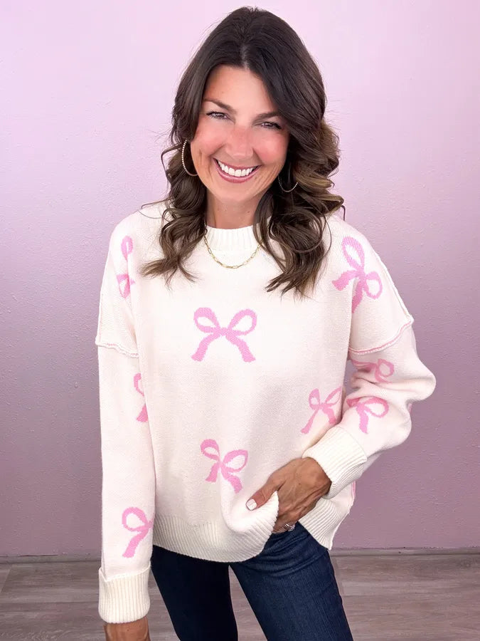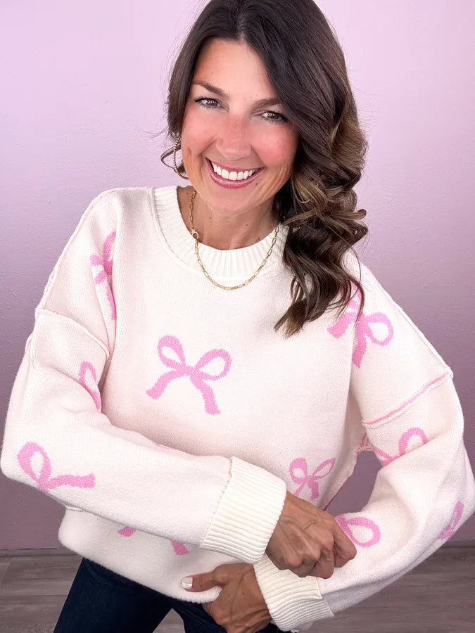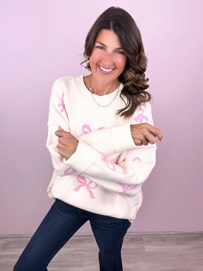 You know we can't resist the bows! Easily became our new favorite sweater- totally cute no matter how you style it!