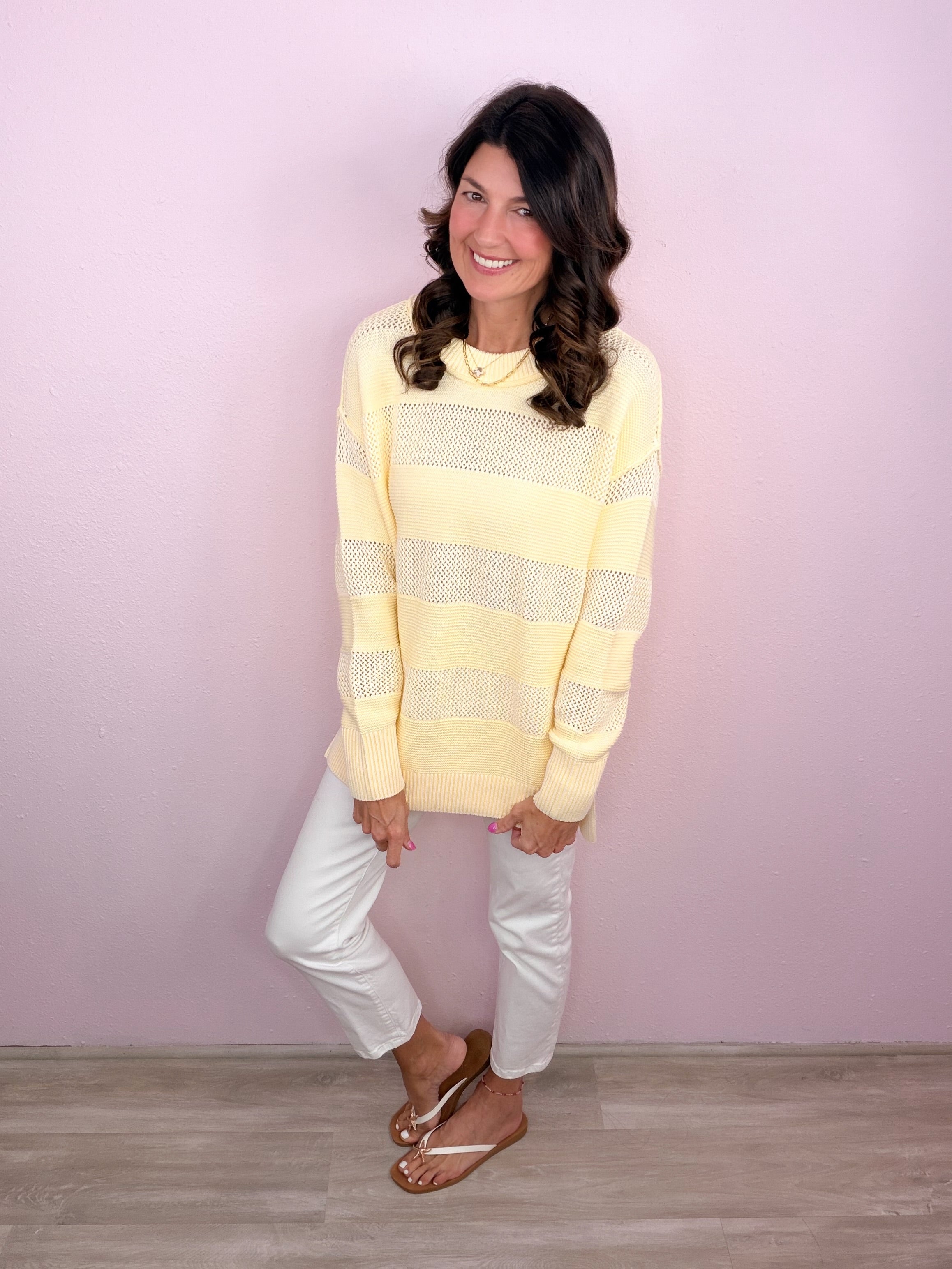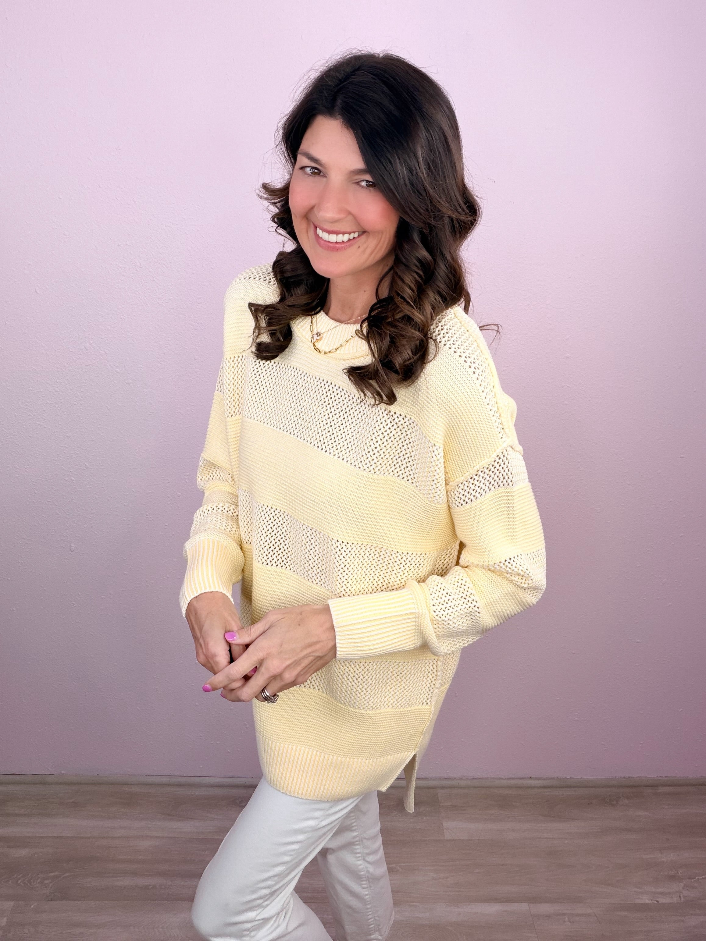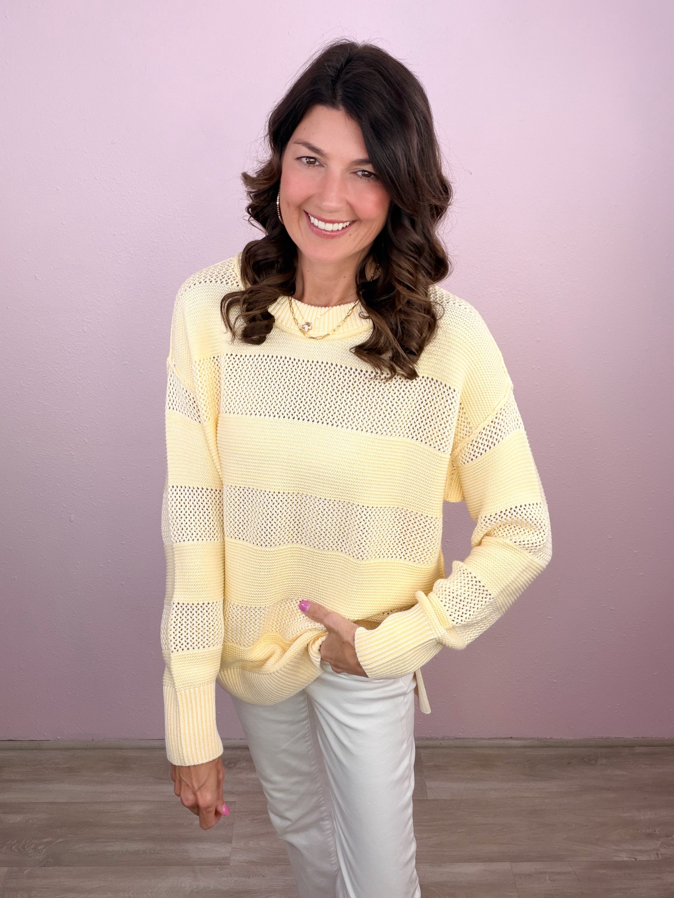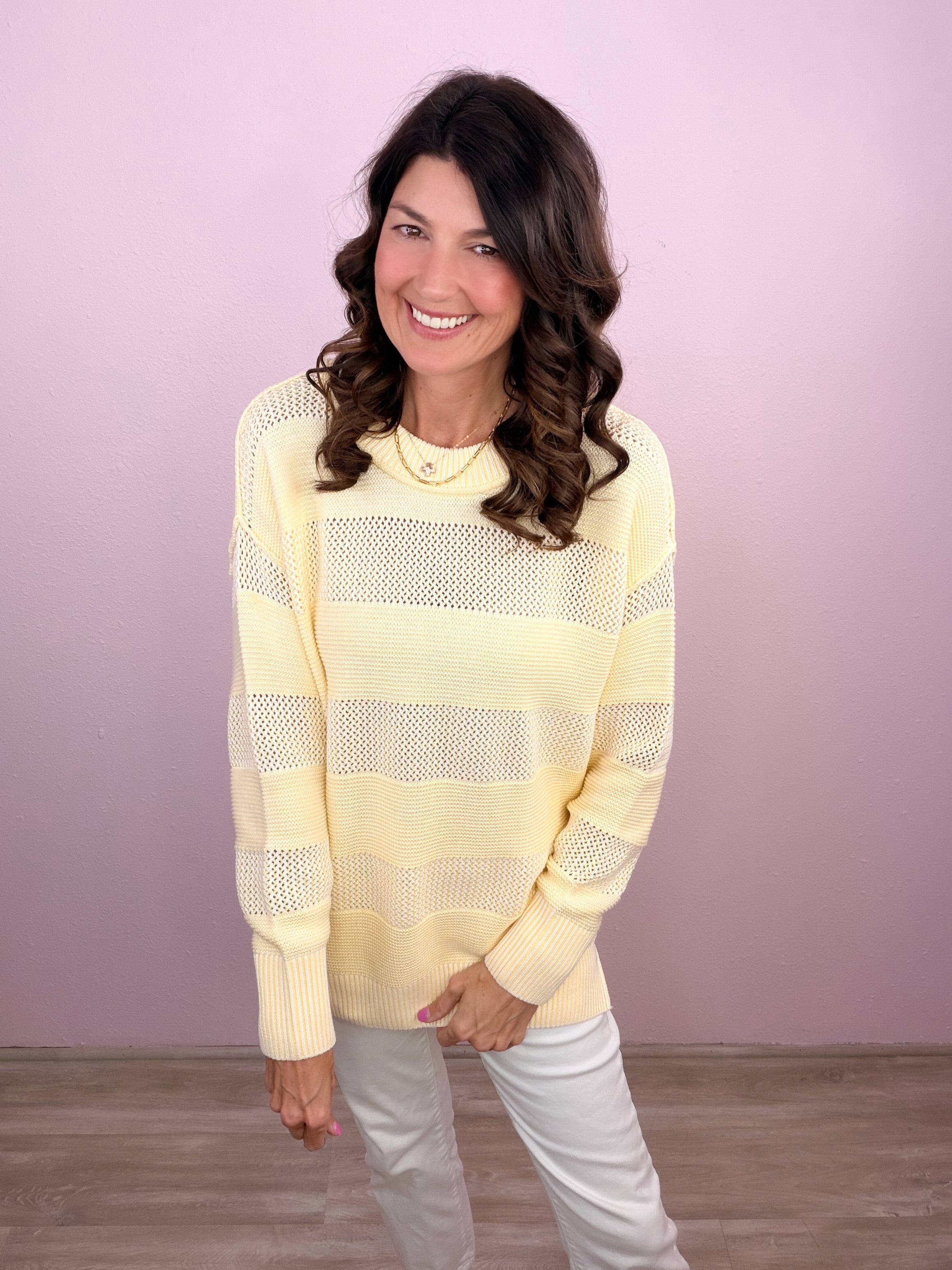 An easygoing sweater with a soft, airy feel! Brings a fresh, polished look while staying comfortable enough for all-day wear!