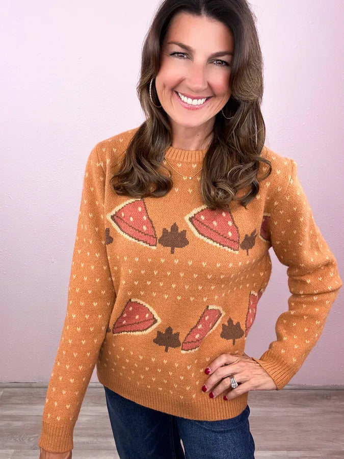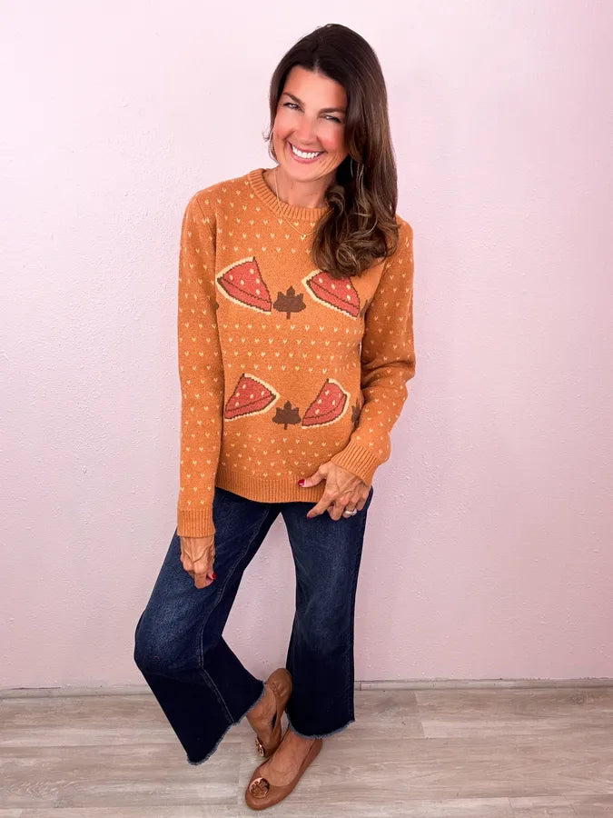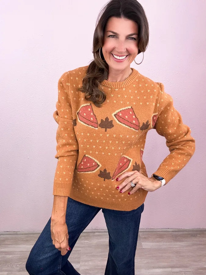 Sweet as pie! We are obsessed with this sweater - this is so cute for Fall + thanksgiving!
