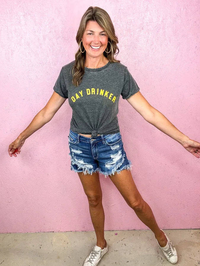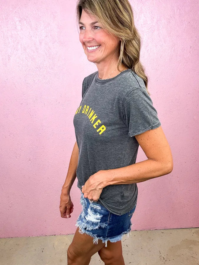 We think this is the perfect tee for the summer (; Super cute "Day Drinker" graphic tee!