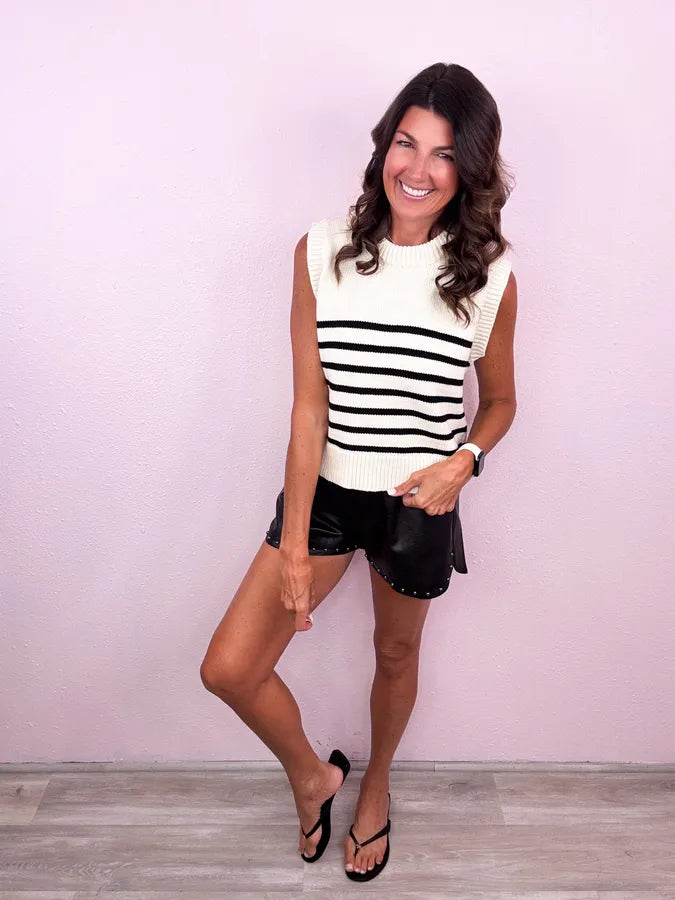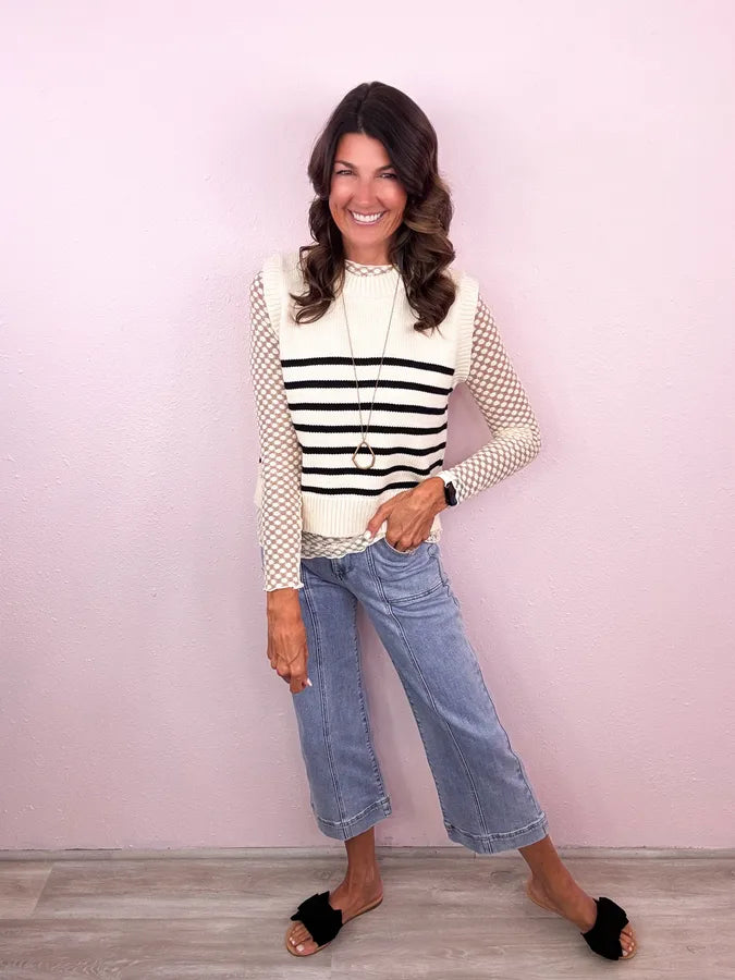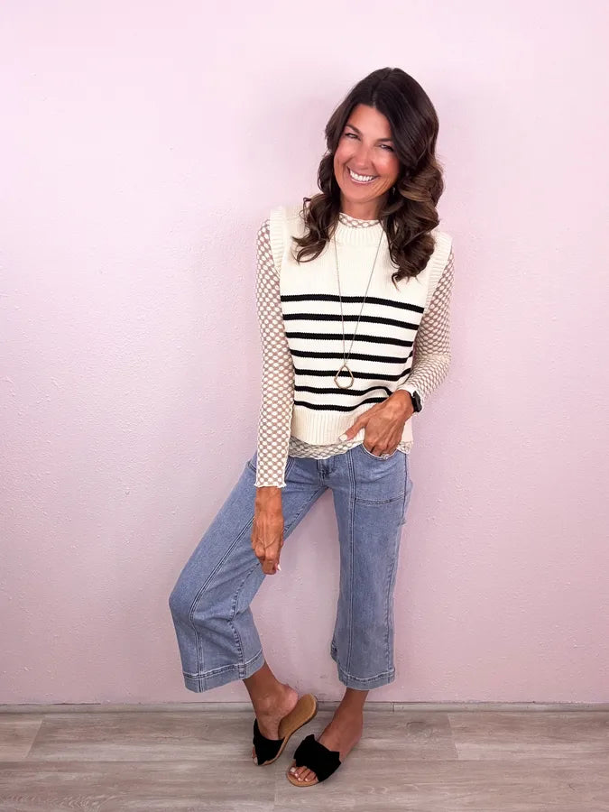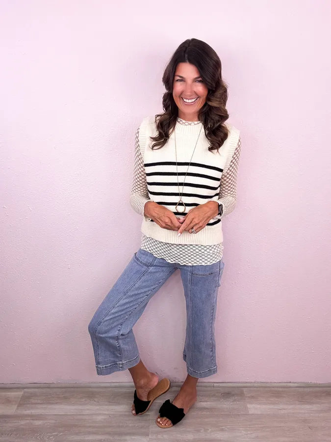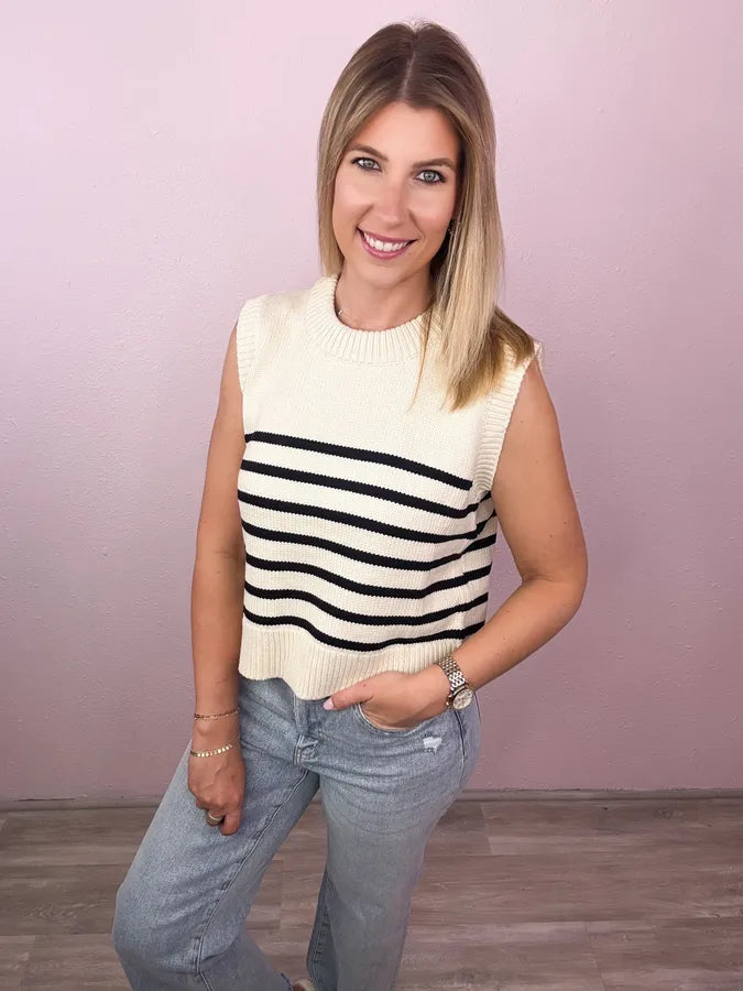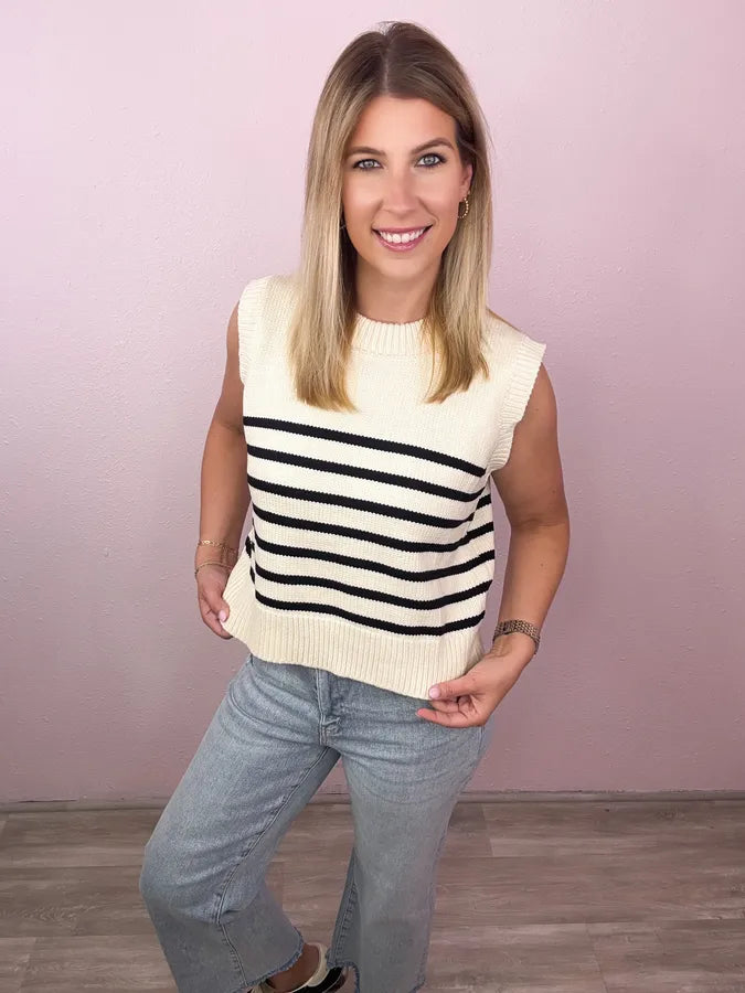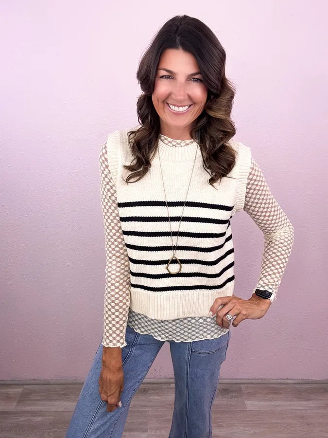 Sweetly striped + effortless to style! This sweater knit top is a throw on and go that can be layered in all of the ways!