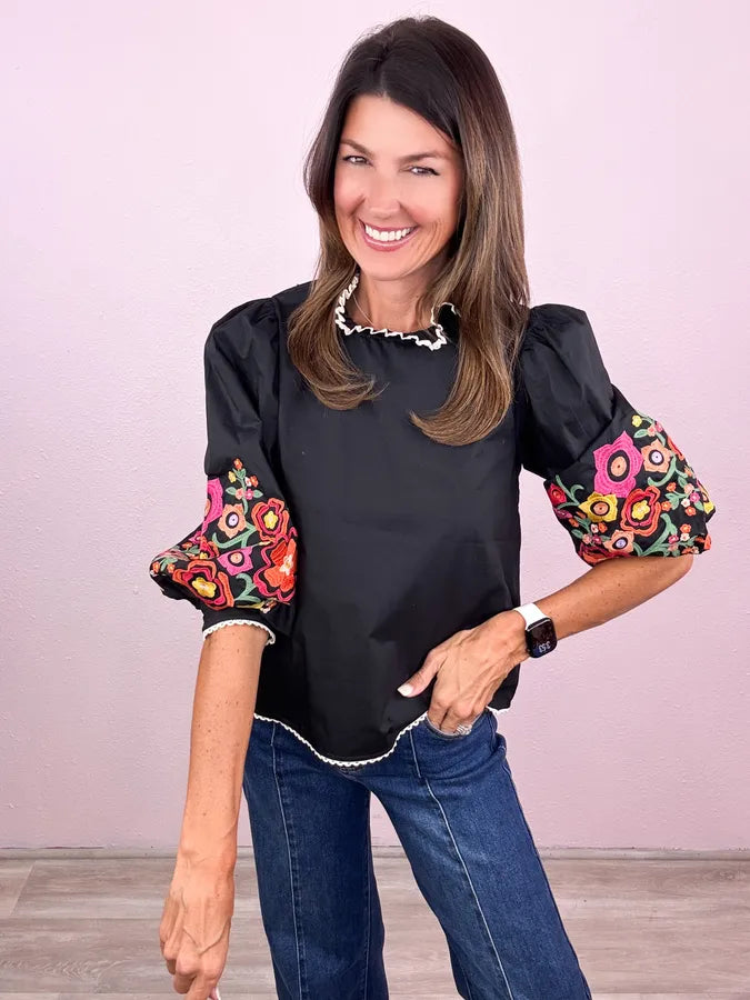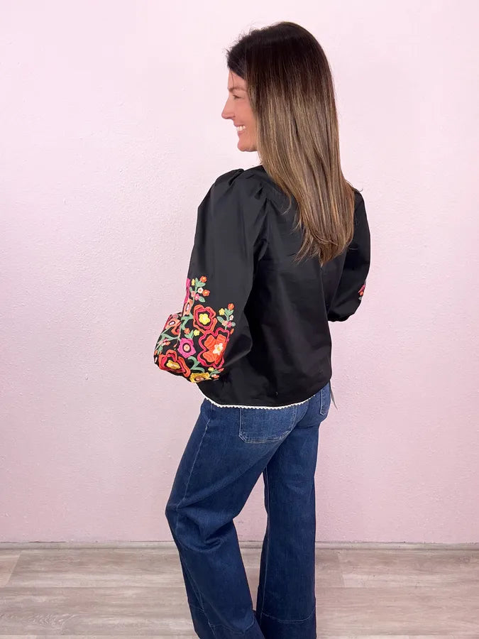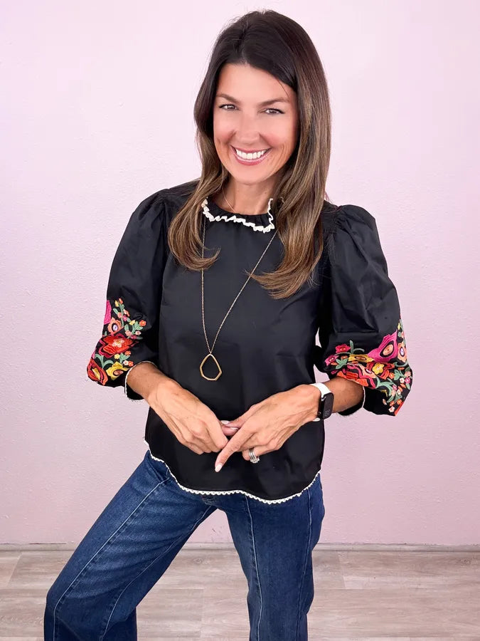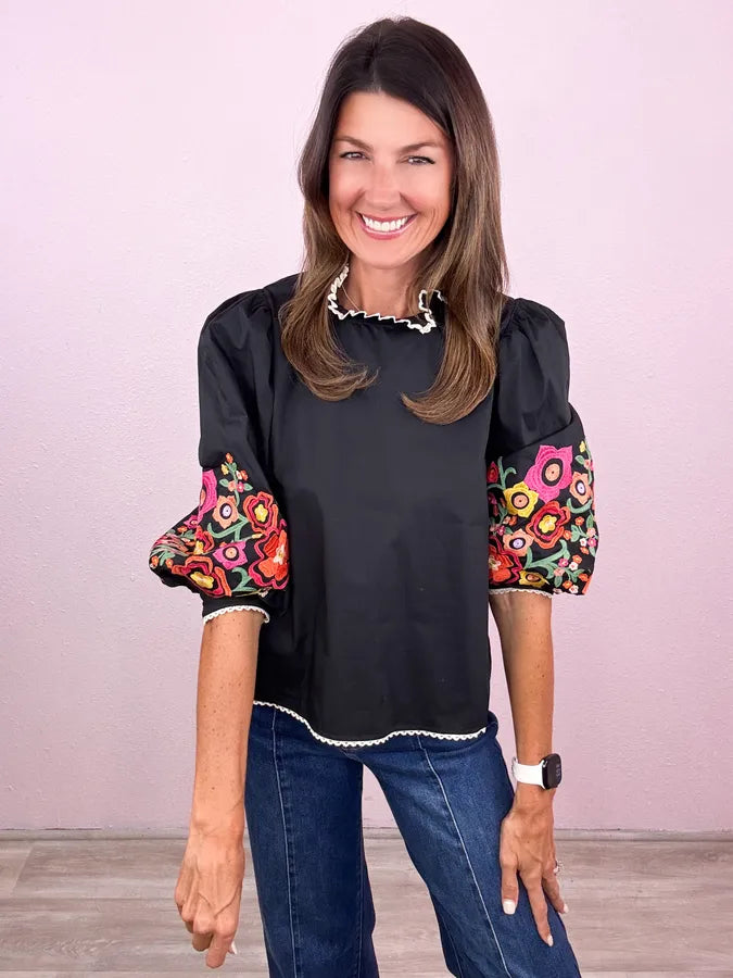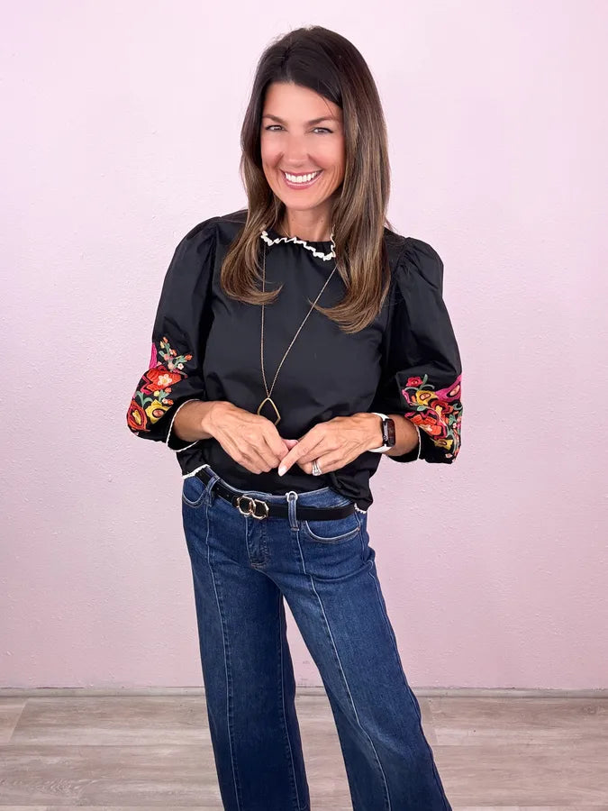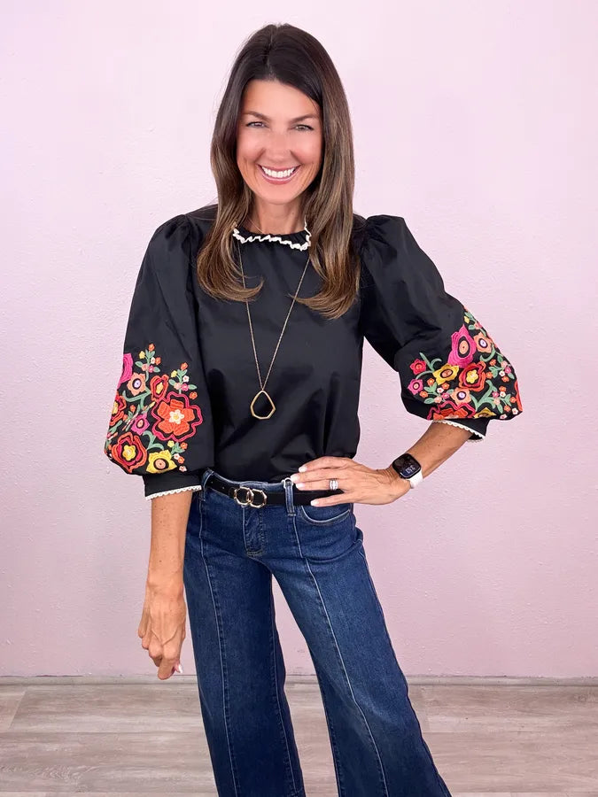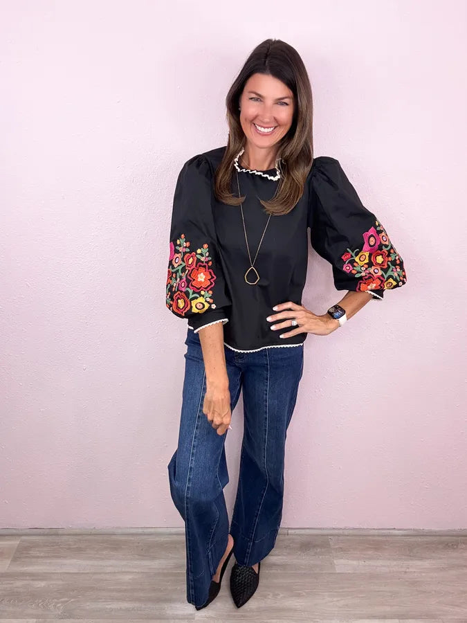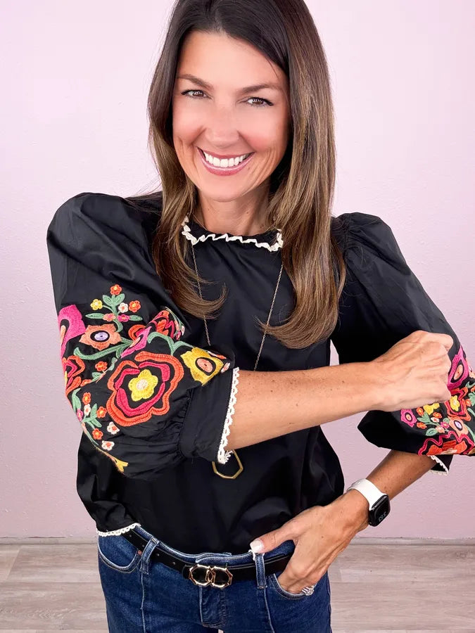 Fabulous across the board! Obsessing over this chic style - we love the flare of the balloon sleeve and this embroidery is beyond fabulous!