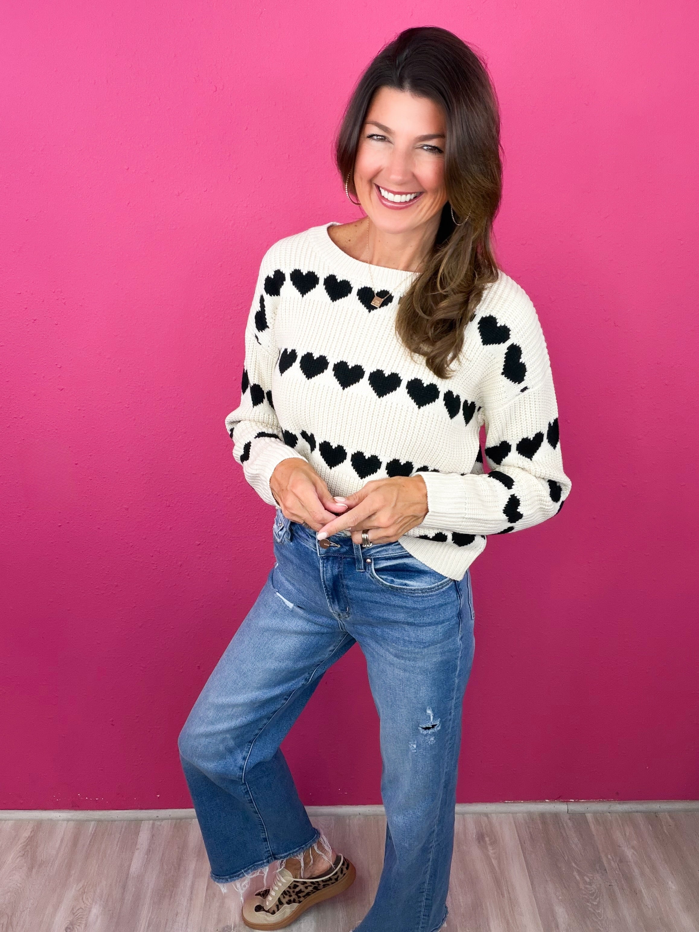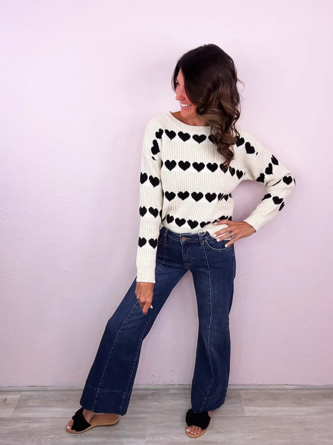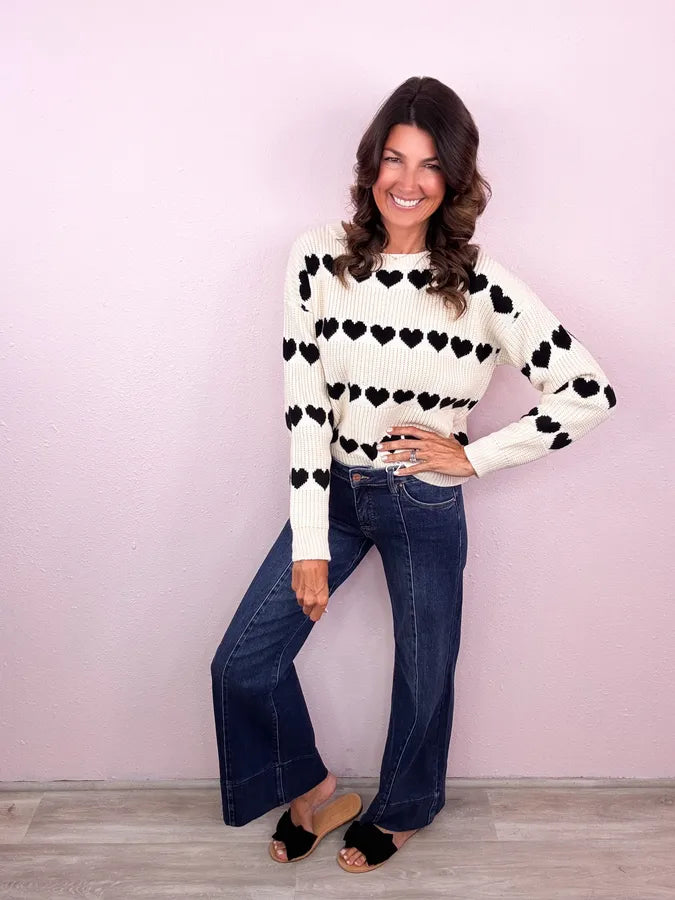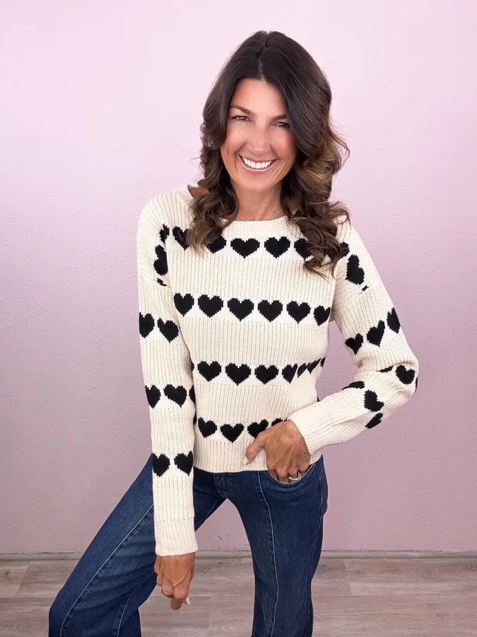 Well it obviously stole our hearts! This is an easy sweater to adore - love the knit heart details and it's effortless to style!