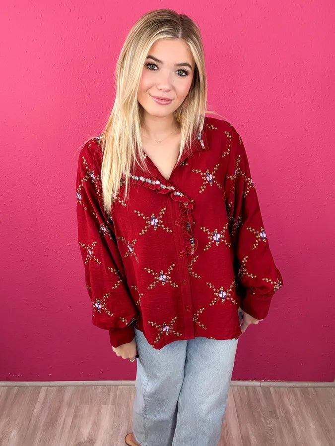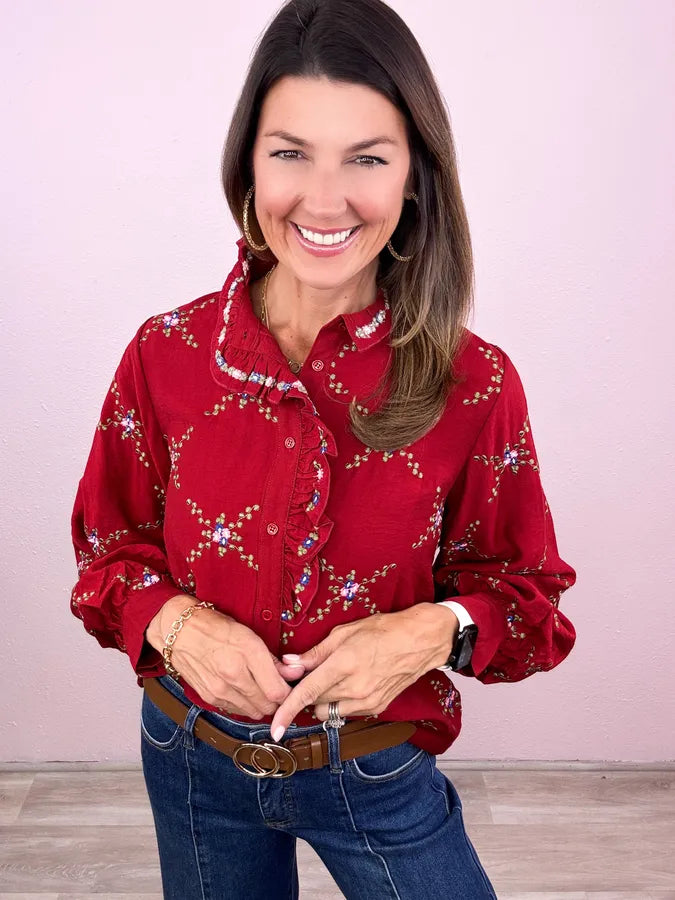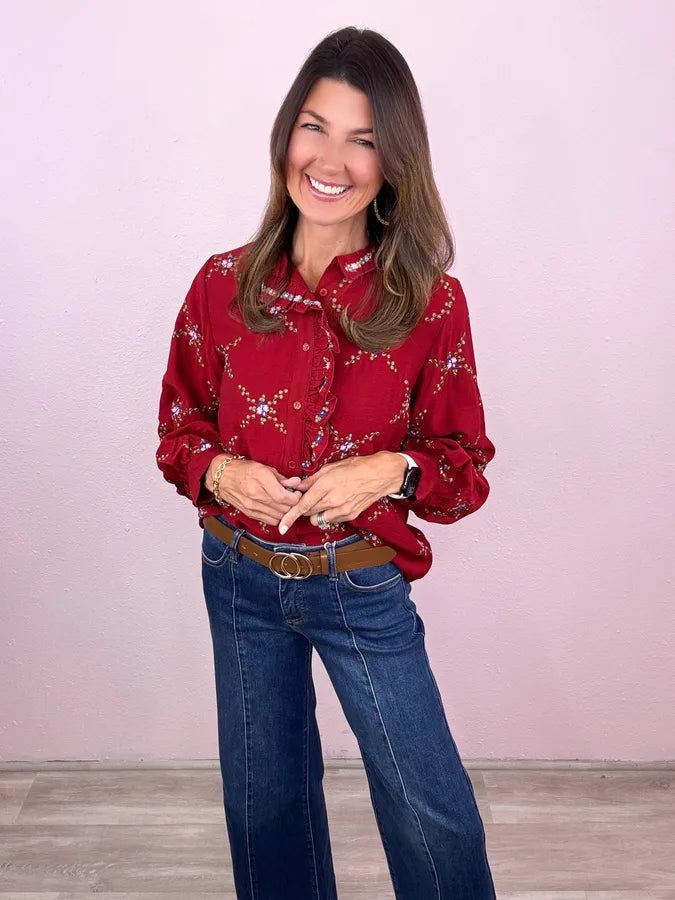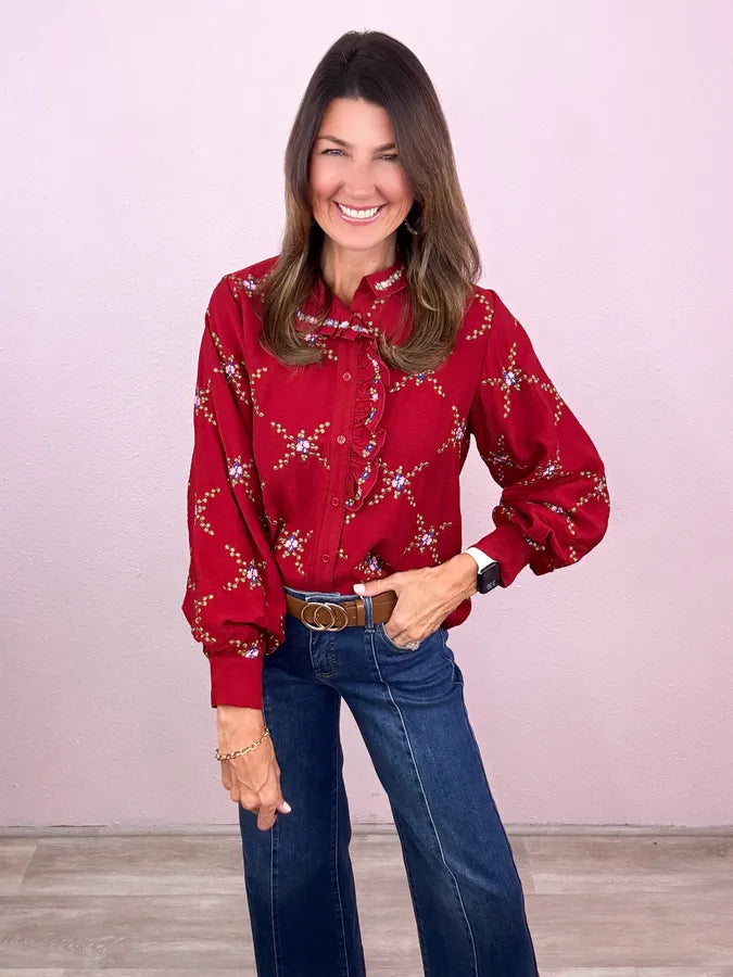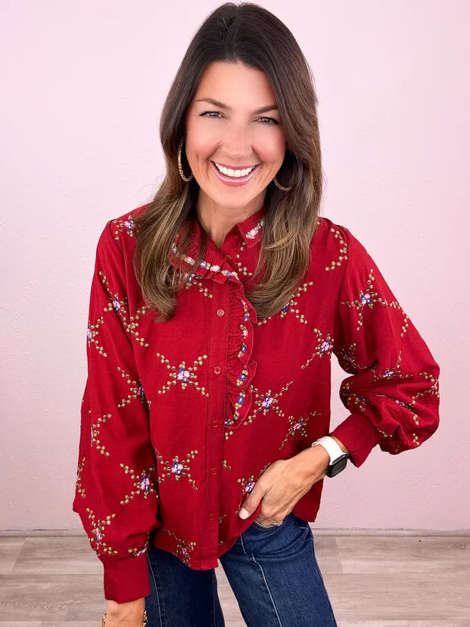 Delicately done and totally our type! This top could not be cuter - love the ruffles and the embroidery!