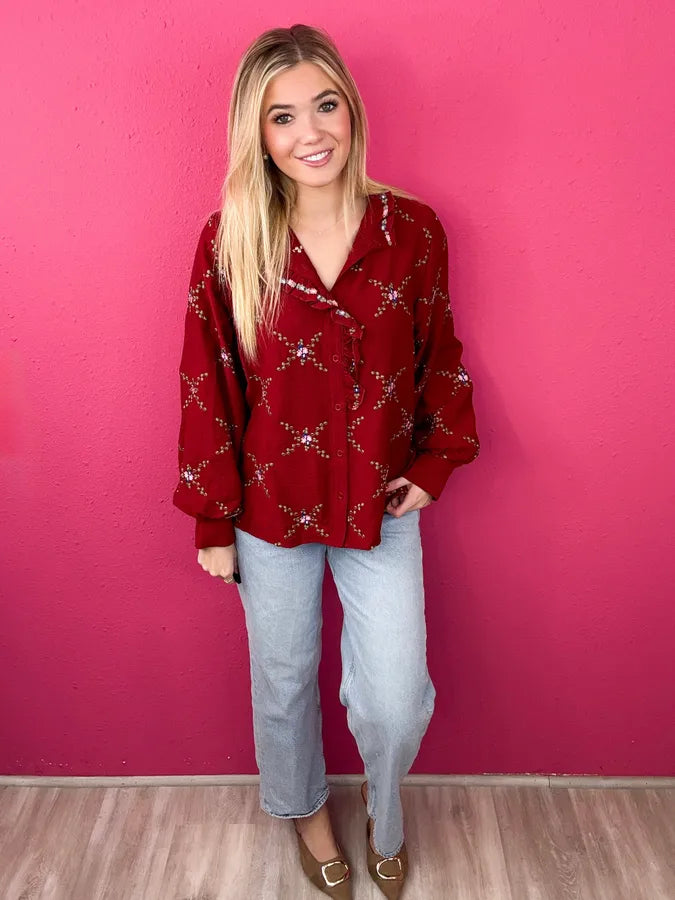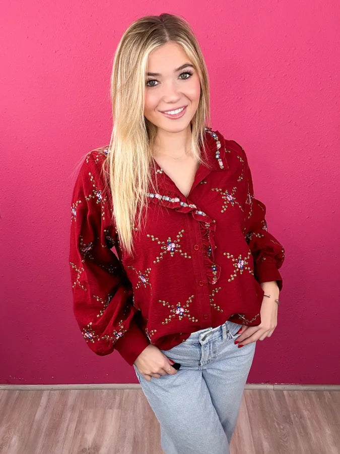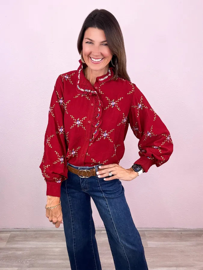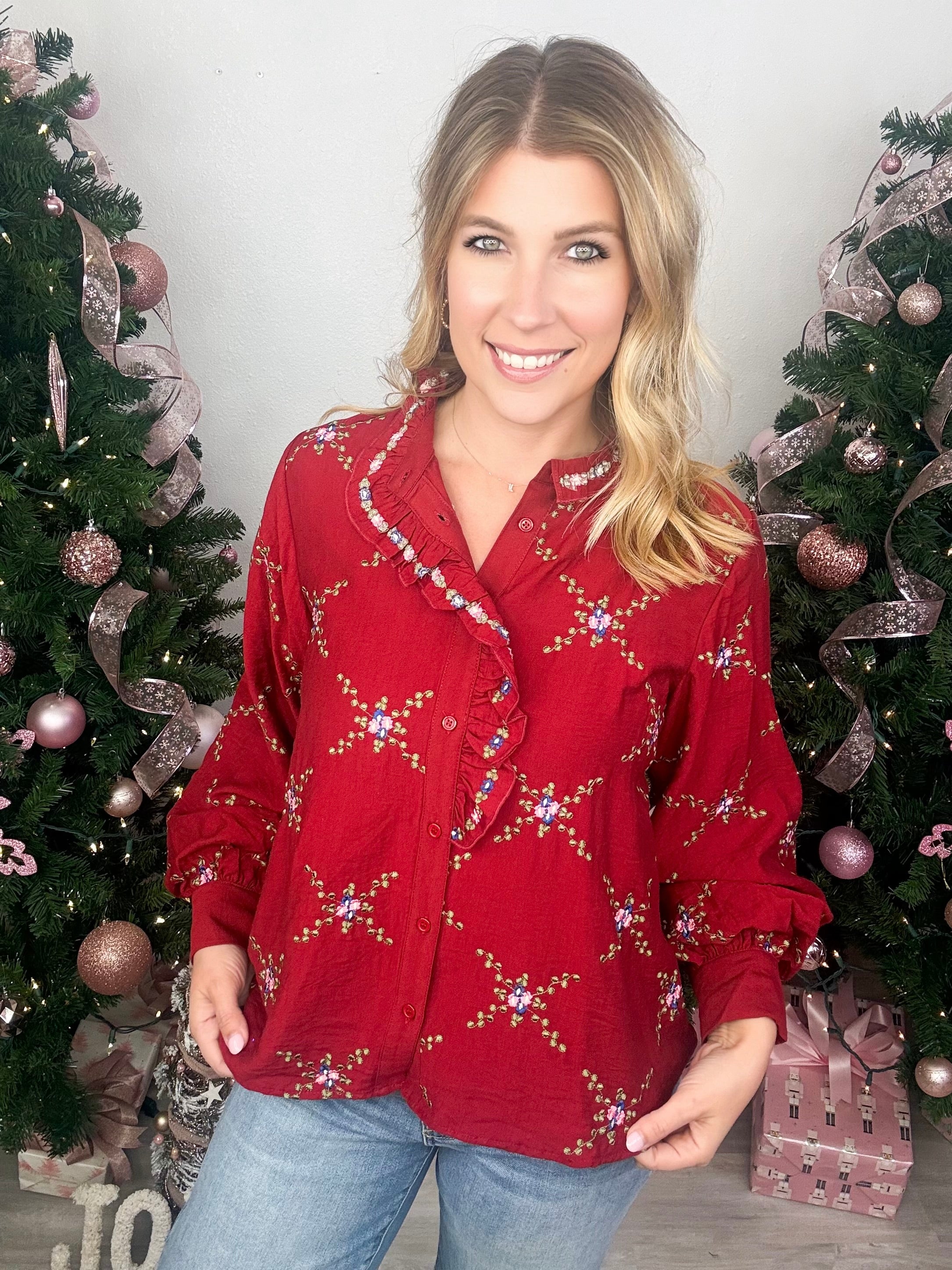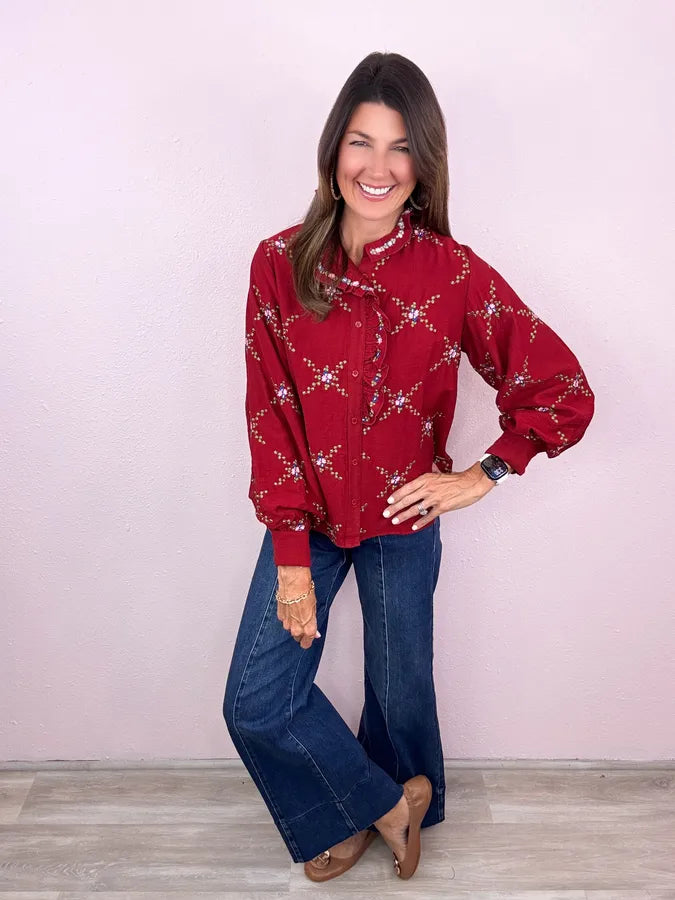 Delicately done and totally our type! This top could not be cuter - love the ruffles and the embroidery!