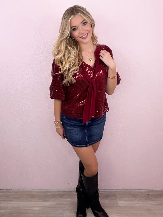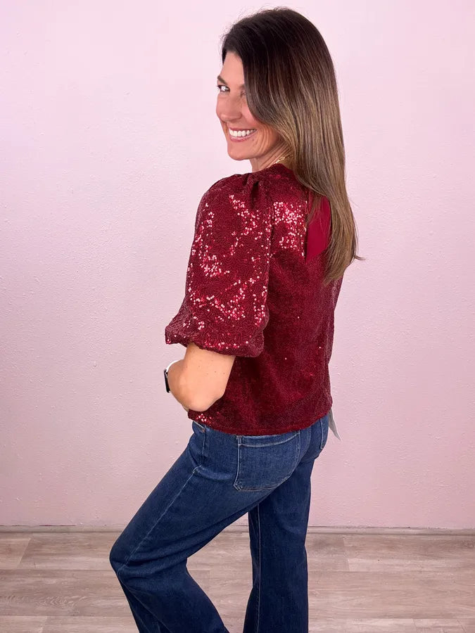 We are SO ready for the Holidays!!! This gorgeous sequin top pairs with so many bottoms and will carry your holiday look!