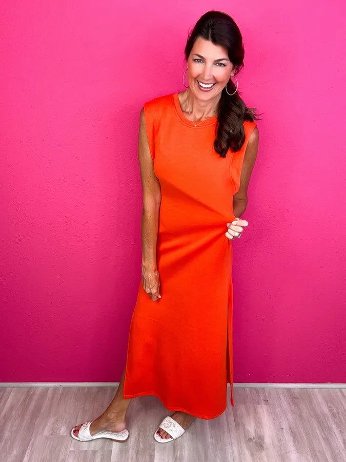 Sleek solid style! This jaw dropping + flattering midi is an easy go to for your wardrobe!